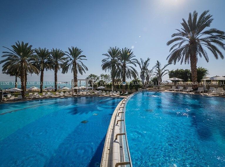 В отеле имеются 2 открытых бассейна с пресной водой, и открытый и крытый бассейны с водой из Мертвого моря.