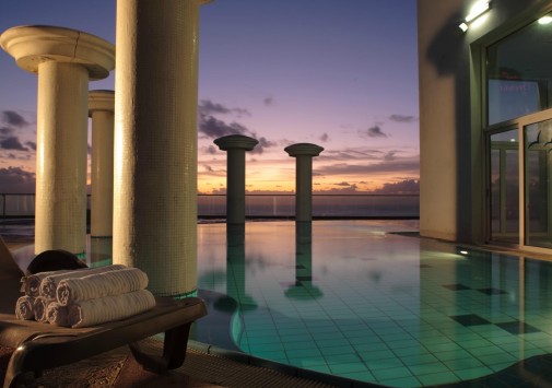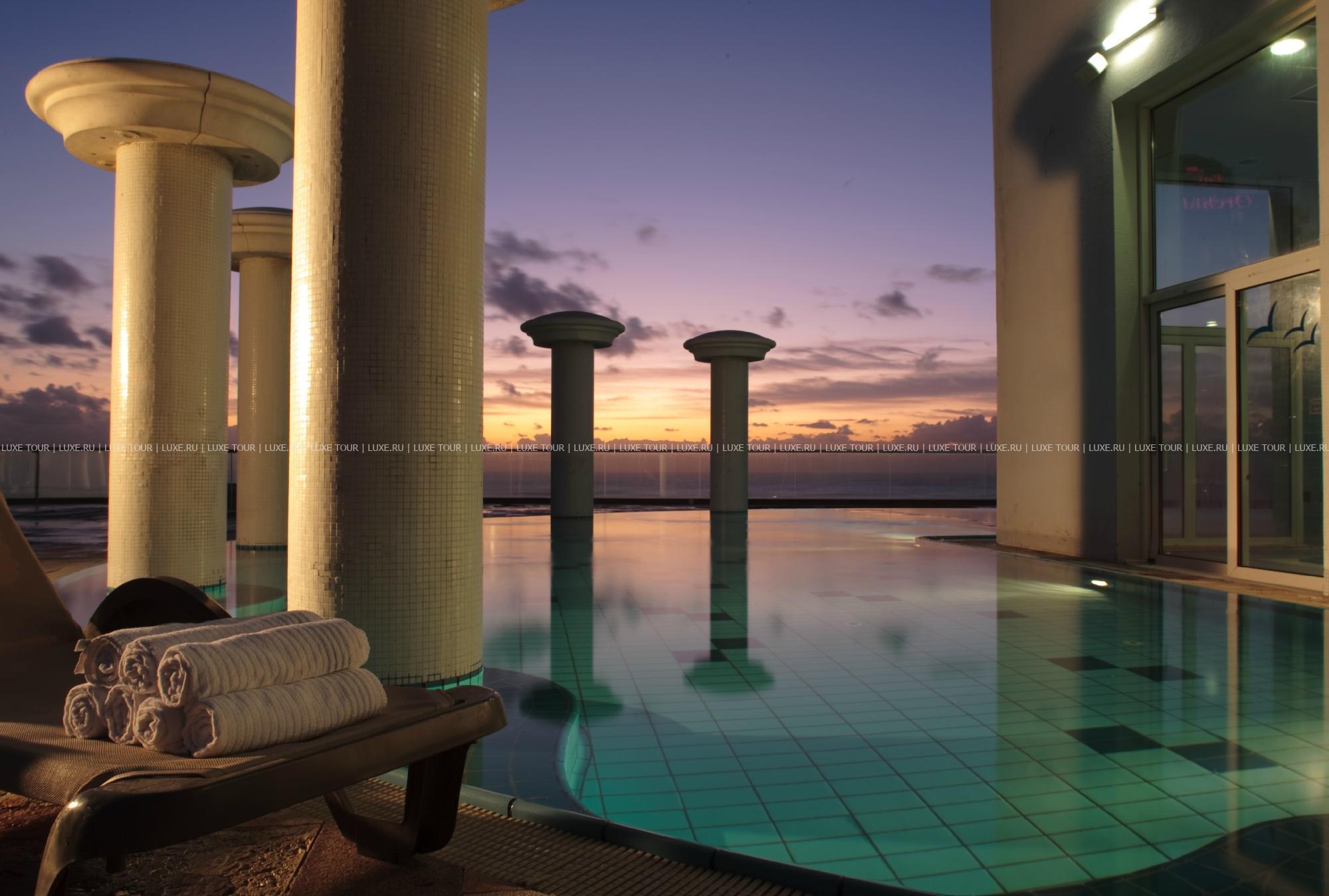 На территории отеля находятся: крытый бассейн с пресной водой и открытый бассейн с морской водой, окруженный просторной террасой для отдыха с видом на пляж.