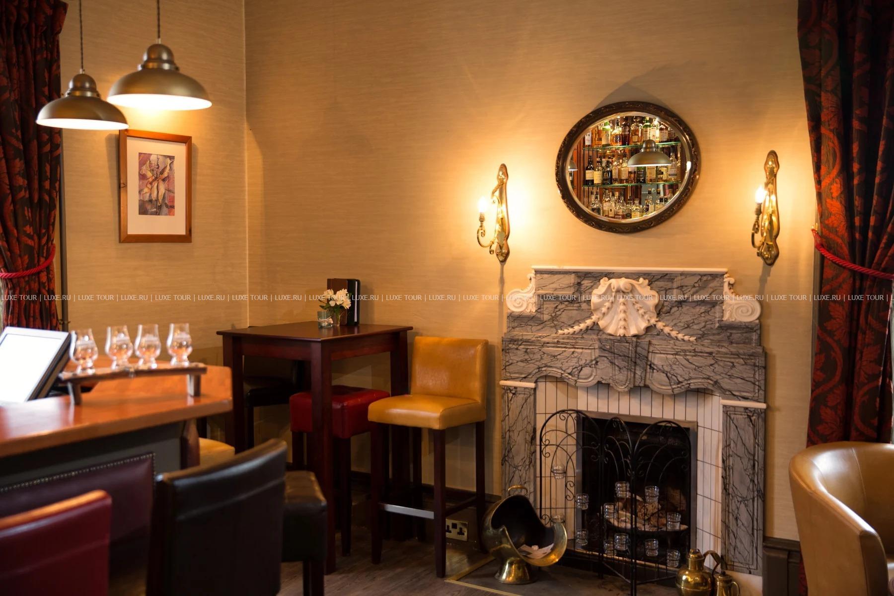 В баре с гостиной по вечерам подают напитки, коктейли и проходят дегустации виски (в том числе — Island, Speyside, Lowland и Highland).