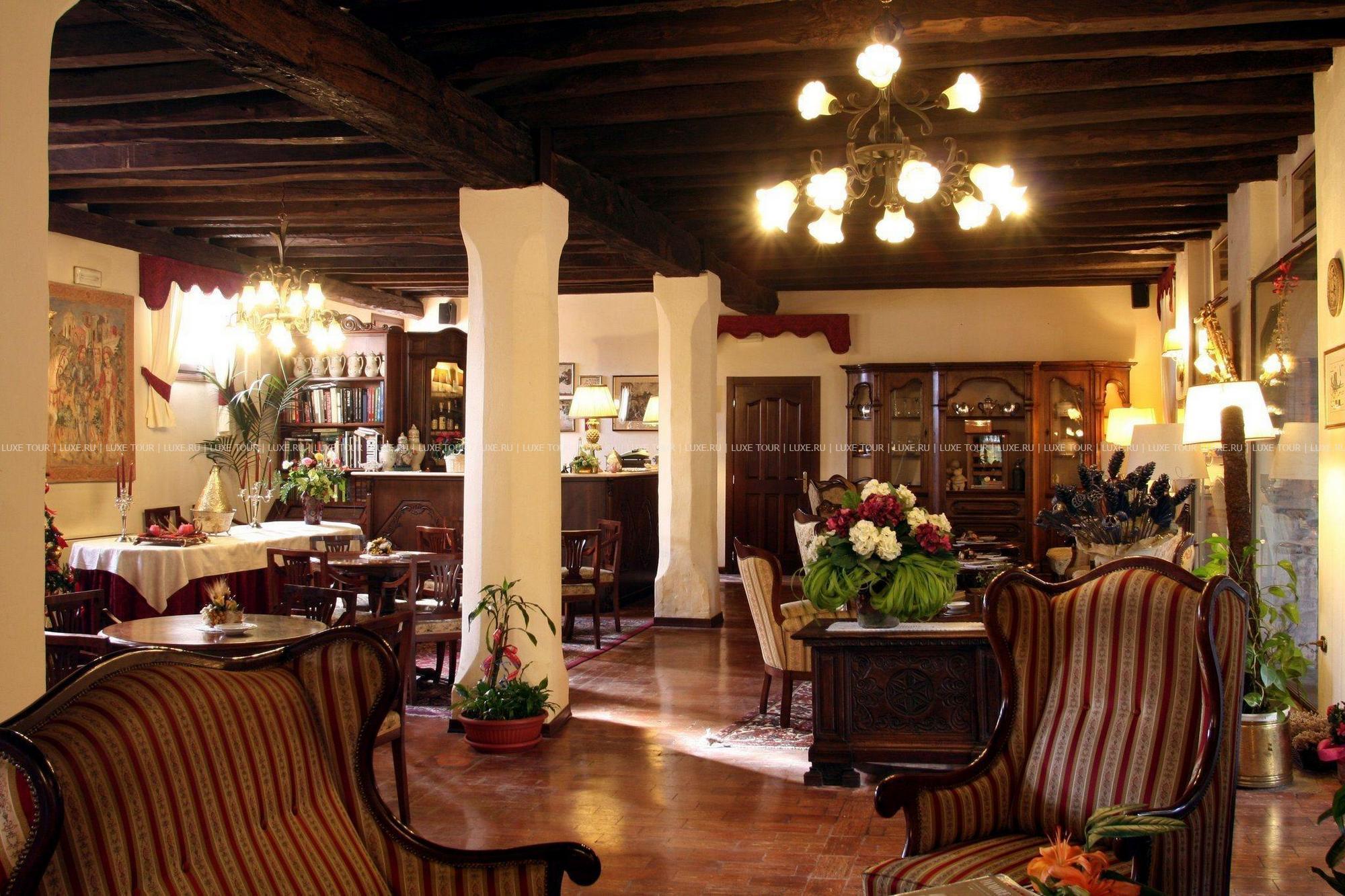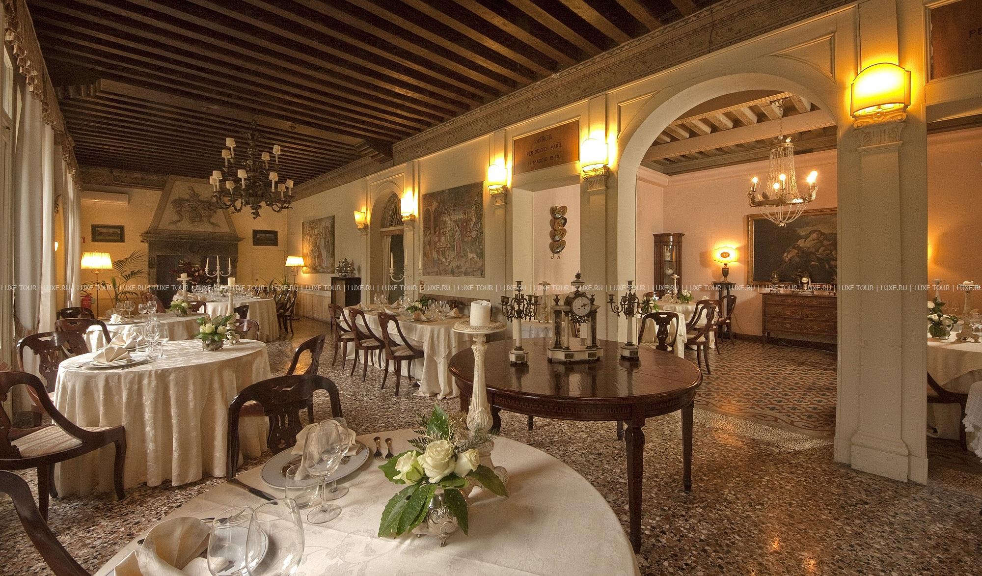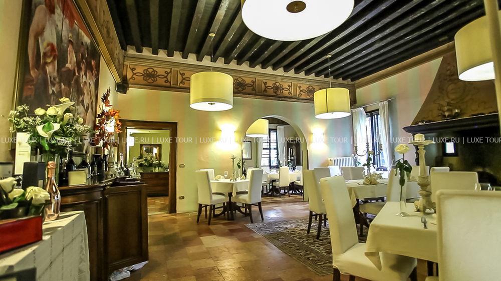 Элегантный гастрономический ресторан отеля, украшенный предметами антиквариата и старинной живописью, предлагает деликатесы традиционной итальянской и международной кухонь. Также столики сервируют на террасе в саду.