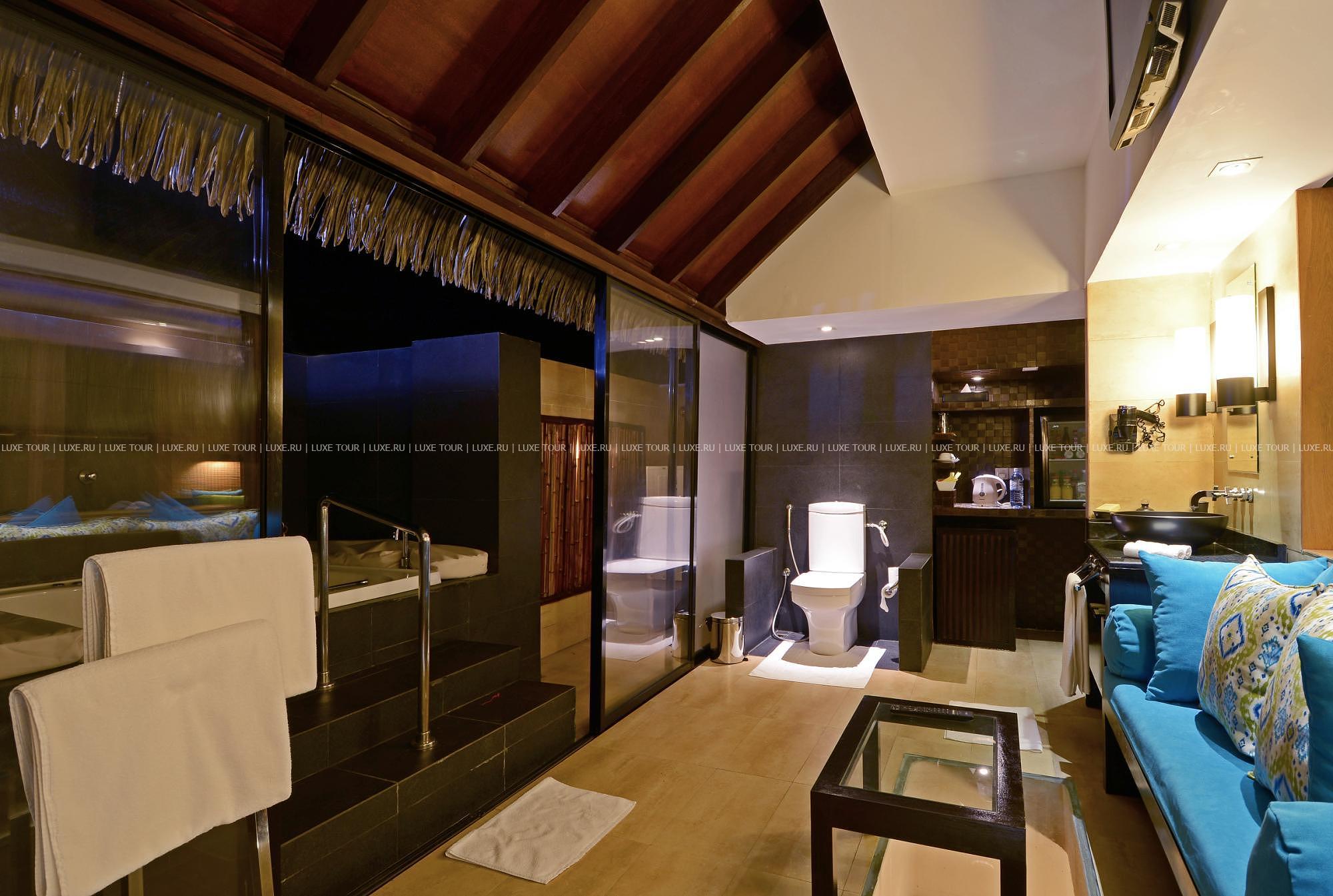 • Главный бар расположен на бирюзовых водах атолла в непосредственной близости от водных вилл
