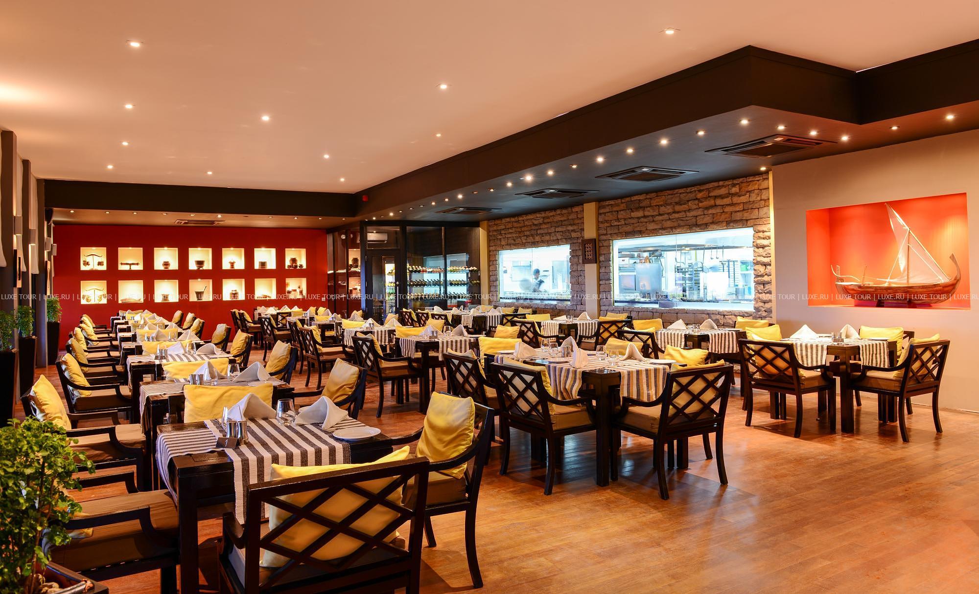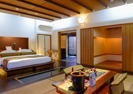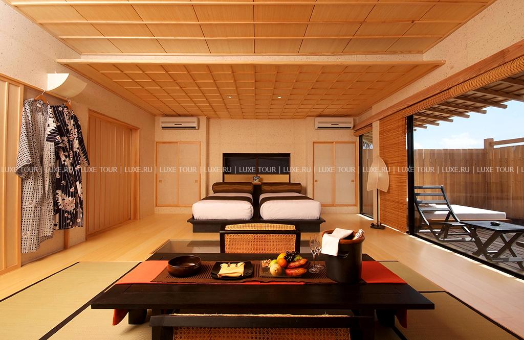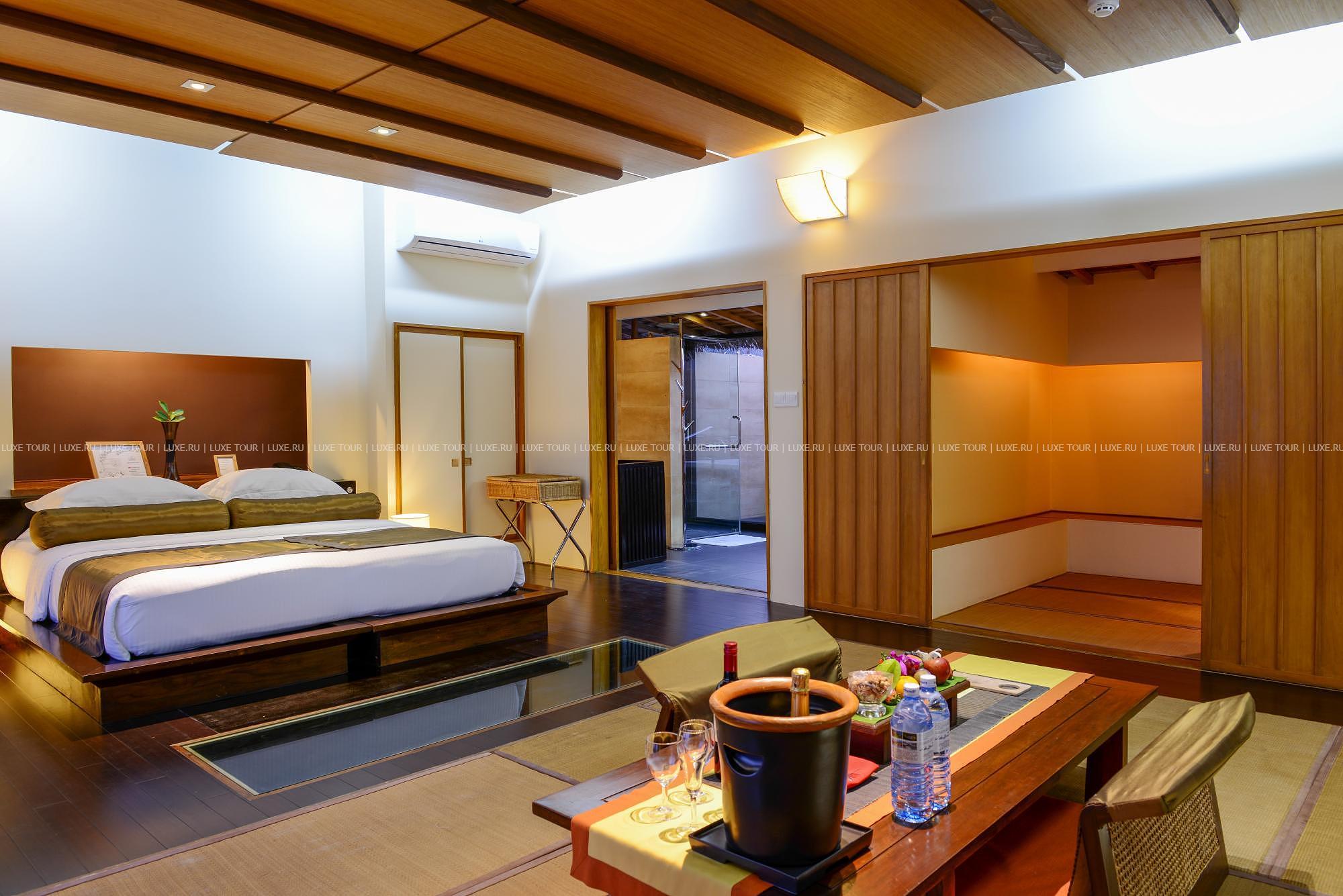• Также гостям предлагается чайная церемония и индивидуальное обслуживание на виллах. Меню включает изысканные блюда интернациональной кухни, деликатесы из морепродуктов и большой выбор вин.