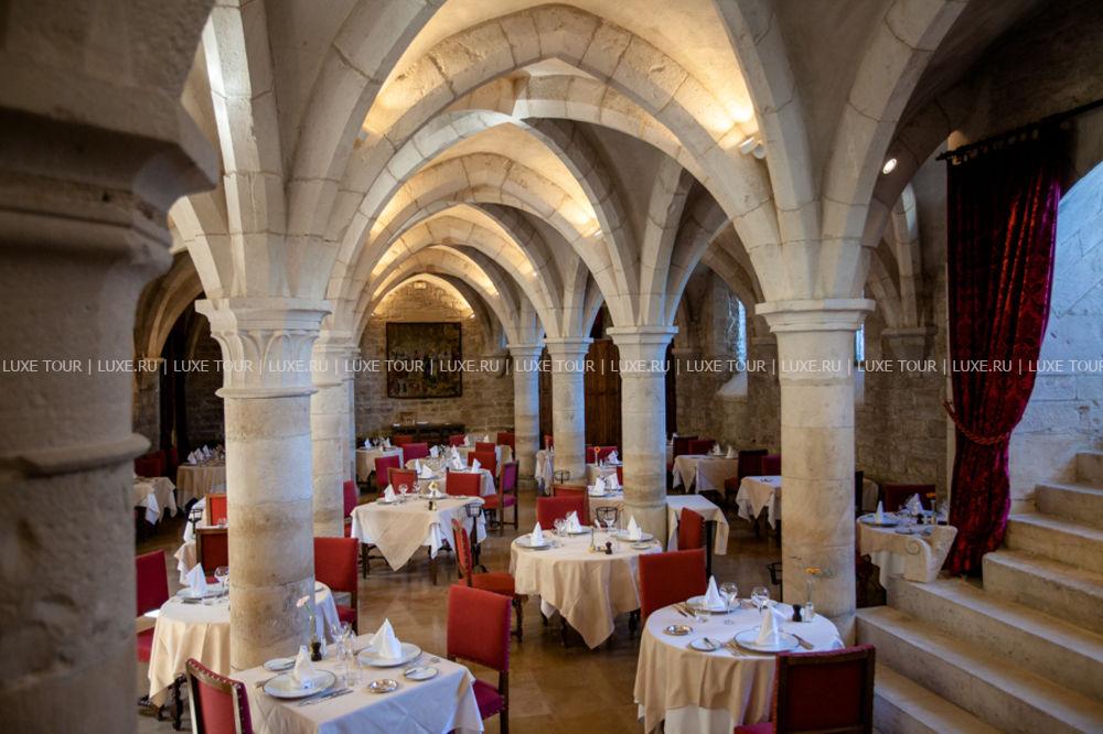 В великолепном готическом зале ресторана Le Clos Prieur со сводчатыми потолками 14 века предлагаются деликатесы французской кухни в сопровождении превосходных вин из винного погреба, в котором хранится более 15 000 бутылок и 600 марок лучших вин.