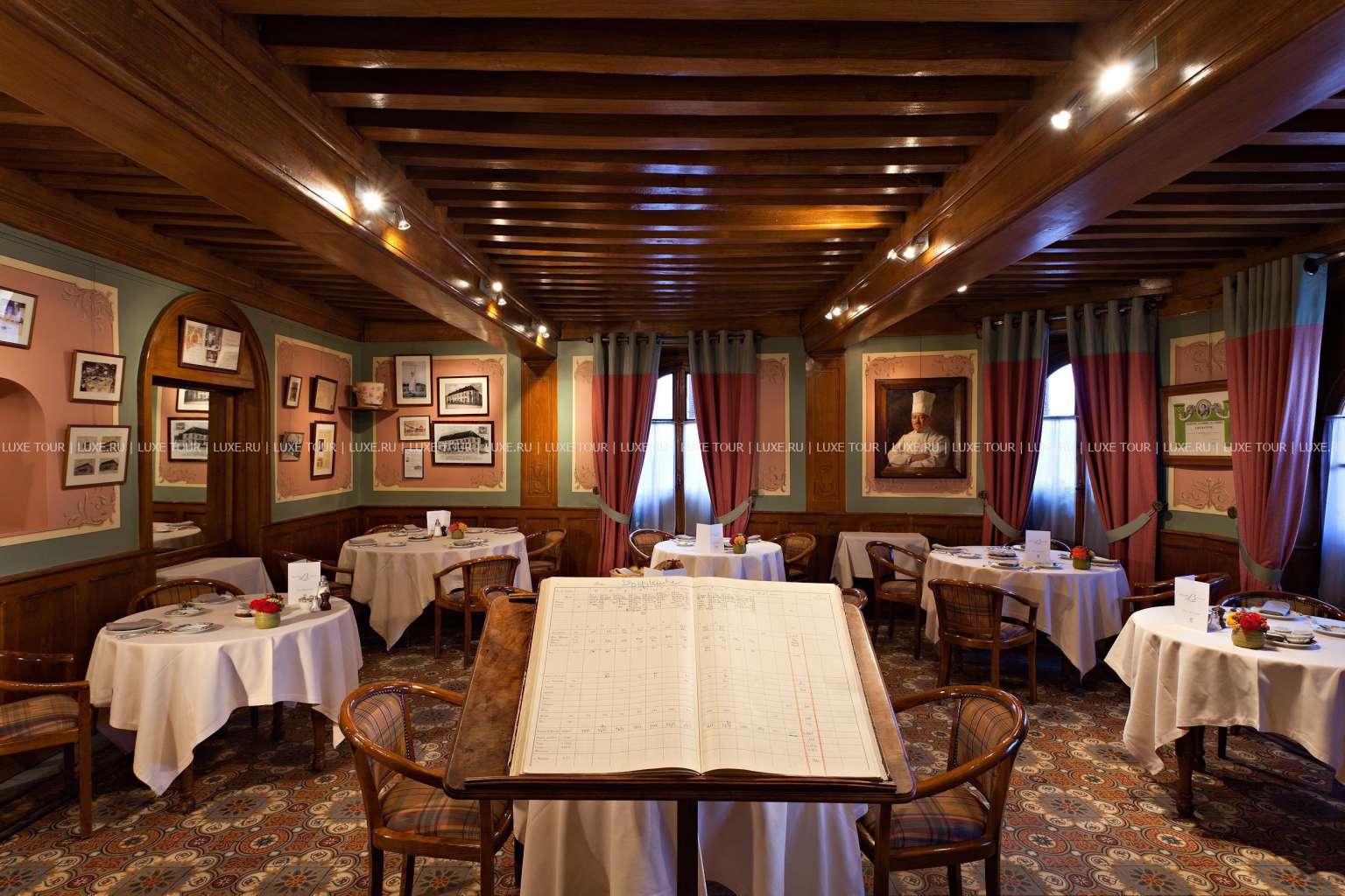 Не менее уникальны и винные погреба ресторана — одни из лучших в Бургундии, в которых хранится 20 000 бутылок и более 1 000 марок превосходных вин.