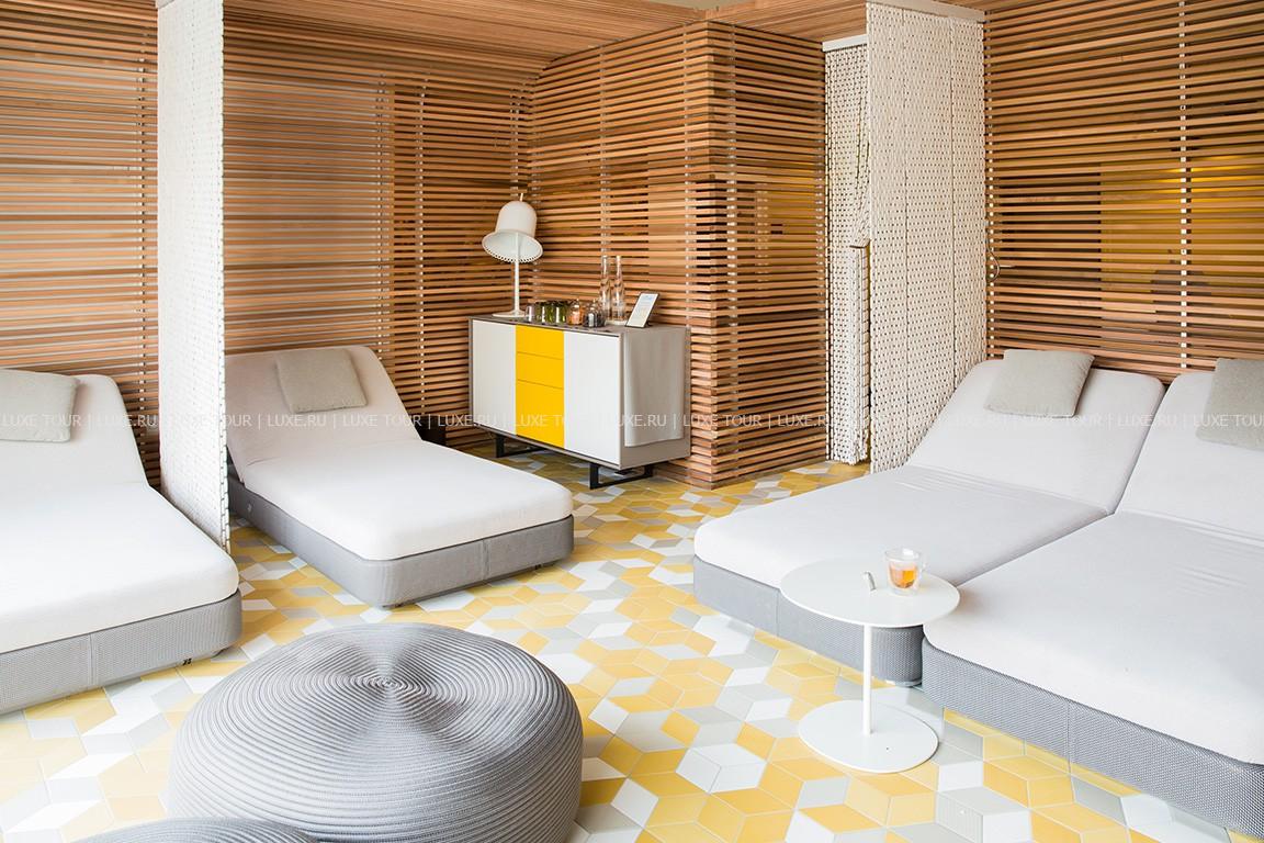 Отель располагает великолепным СПА комплексом площадью 700 м2, где есть: крытый бассейн, 2 сауны, хаммам, лакониум (мягкая сауна с температурой 55°), калдариум (влажная ароматическая парная с температурой 45°), фитнес-зал, зону отдыха и 6 прекрасно оборудованных кабинетов, где предлагается широкий выбор различных массажей, обертываний, пилингов и других услуг по уходу за лицом и телом с использованием натуральной продукции знаменитой французской линии L'Occitane, включающих такие местные ингредиенты как лаванда, лимон, вербена, мед.