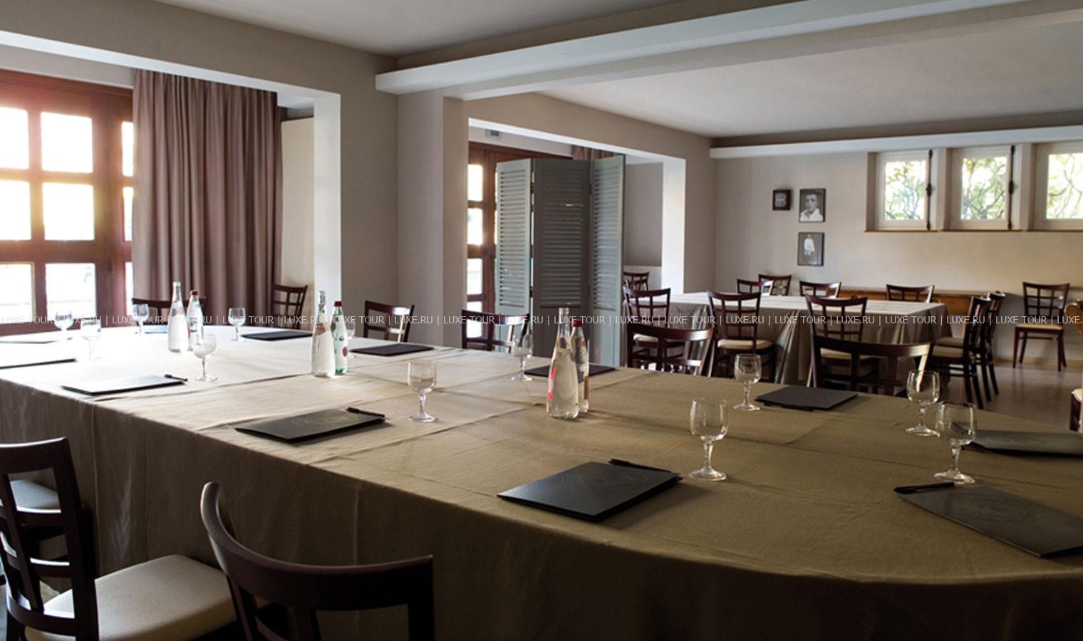В старинном зале со сводчатыми потолками сервируют завтраки.