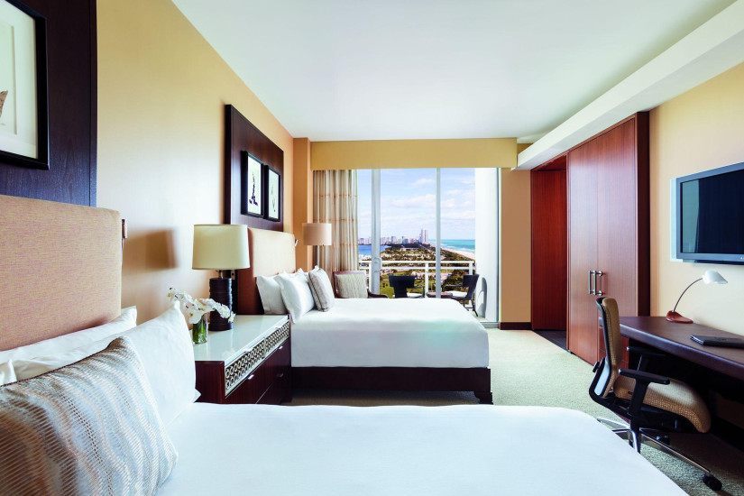 - 154 м2. Состоит из двух спален (одна с кроватью king-size, другая – с кроватью king-size или двумя кроватями queen-size), гостиной с зоной отдыха, обеденной зоной и современно оборудованной кухней, ванной комнаты с панорамным окном, ванной и душем, гостевой туалетной комнаты, двух балконов с частичным видом на океан и канал Baker's Haulover. Максимальное размещение – 4 взрослых.
