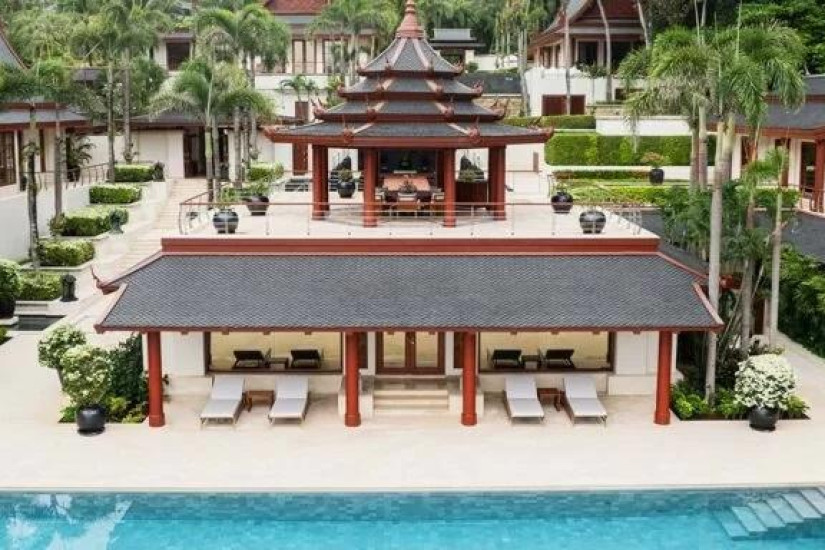 - 2271 м2. Состоит из шести спален, гостиной, столовой, шести ванных комнат, мебелированной террасы с бассейном и видом на залив. Максимальное размещение — 12 человек.