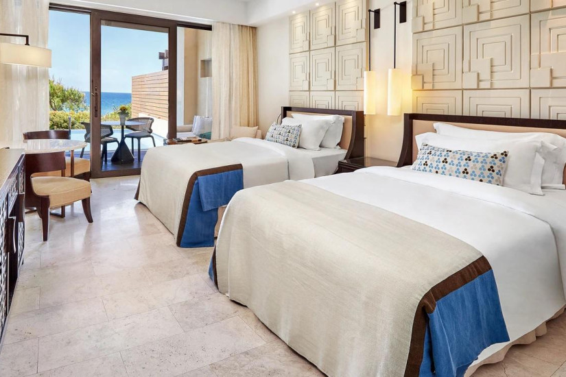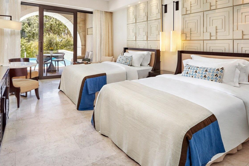 - В отеле 321 номер различных категорий, включая Guest Room, Ionian Exclusive Suite и виллы с собственными бассейнами. Интерьер просторных номеров и шикарных вилл сочетает изысканный современный дизайн и традиционные греческие мотивы, а с балконов и террас открывается чудесный вид на пышные сады, живописное гольф-поле и сверкающую бирюзу Ионического моря. Гостям вилл и номеров Ionian Exclusive Suite предоставляются привилегии и дополнительный бесплатный сервис – от отдельной зоны на пляже Dunes до услуг персонального дворецкого.