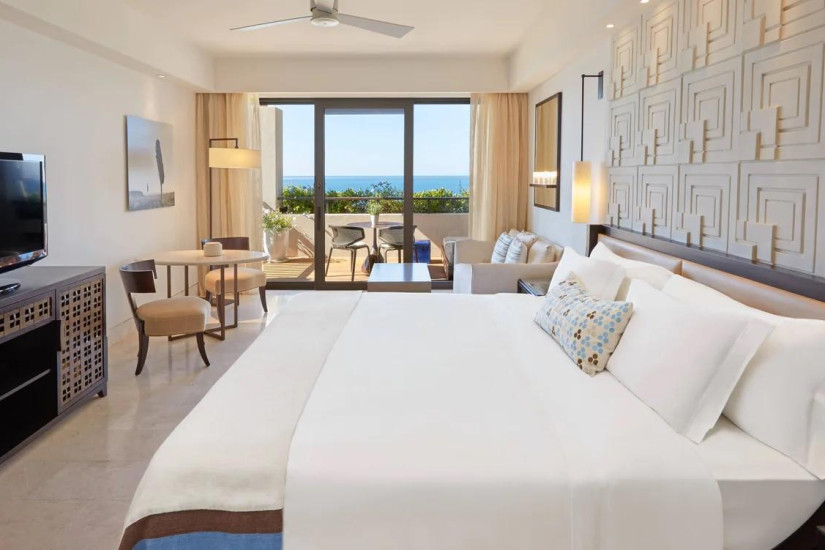 - 43 м2. Состоит из спальни с кроватью king-size или двумя кроватями twin и зоной отдыха с диваном, ванной комнаты с ванной и душем, в некоторых номерах балкон или терраса с зоной отдыха и частичным видом на море и гольф-поле или бассейн. Максимальное размещение – 3 взрослых или 2 взрослых + 1 ребенок.