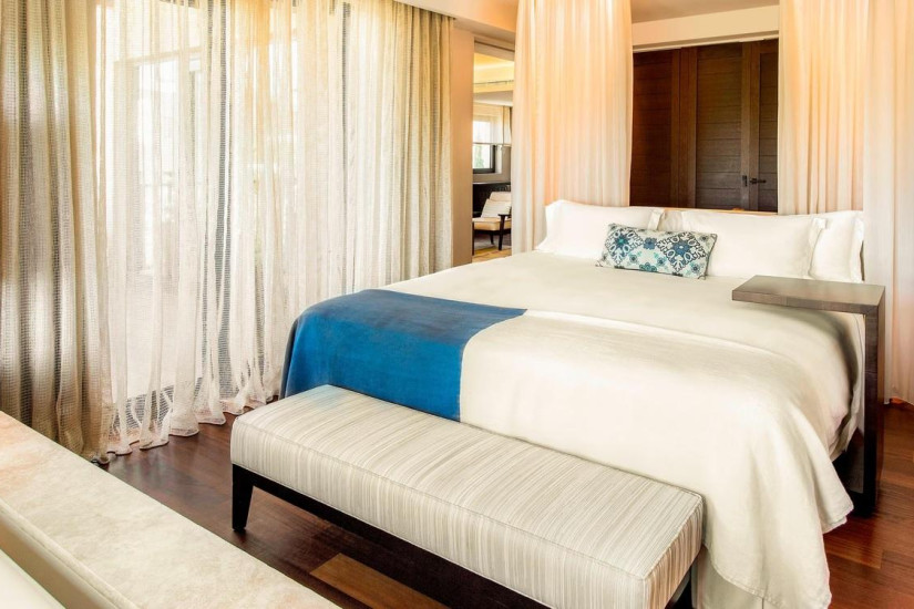 - 43 м2. Состоит из спальни с кроватью king-size или двумя кроватями twin и зоной отдыха с диваном, ванной комнаты с ванной и душем, в некоторых номерах терраса с персональным бассейном (23 м2), зоной отдыха и видом на сад и курорт. Максимальное размещение – 3 взрослых или 2 взрослых + 1 ребенок.