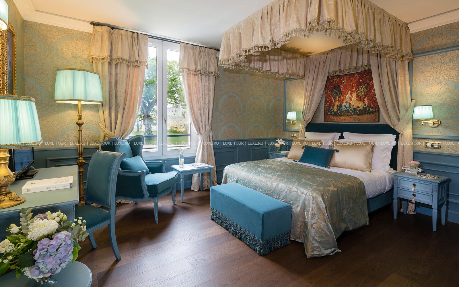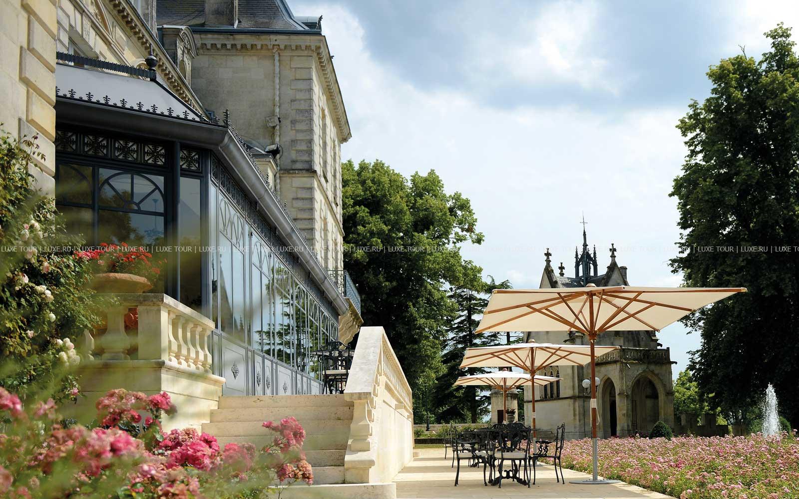 Между Бордо и Коньяк — городами, символизирующими знаменитые французские напитки, в живописном местечке Мирамбо, среди пышной зелени великолепного парка площадью восемь гектаров расположен Chаteau de Mirambeau Аквитания, великолепный дворец в стиле эпохи Ренессанса. Богатая история замка уходит в XI век, когда на этом месте была возведена средневековая крепость, которая после 1820 года была перестроена в изумительный замок, а в 2002 году, после полной реконструкции, здесь открылся фешенебельный отель. Дворцовая архитектура Chаteau de Mirambeau Аквитания гармонично дополнена пышной роскошью внутреннего убранства всех помещений — от шикарных номеров до элегантного ресторана и конференц-залов. Помимо королевских интерьеров и уникального исторического наследия гостей отеля ждут отличный сервис и современные условия для отдыха: СПА центр с бассейном, парными и фитнес-залом, открытый бассейн в саду, теннисные корты, гастрономический ресторан с отменной кухней и множество других услуг самого высокого класса.
