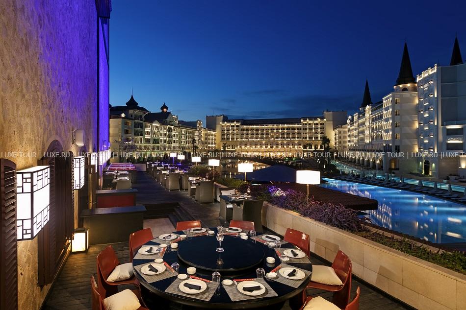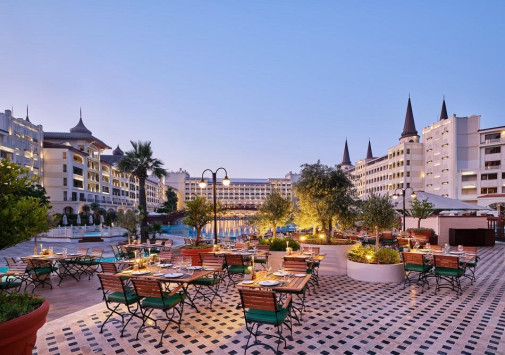Mardan Palace – грандиозный курортный комплекс в Анталии, раскинувшийся у огромного частного пляжа с белоснежным песком и лазурного Средиземного моря. Архитектура и интерьеры отеля восхищают роскошью. Отель впечатляет великолепием интерьеров, в том числе, и в шикарных номерах, а также огромным выбором эксклюзивных услуг и развлечений: огромный бассейн, потрясающий спа-центр, множество ресторанов на любой вкус, яркие вечерние шоу, прекрасные возможности для спорта, проведения свадеб и масштабных мероприятий любого уровня. Mardan Palace предлагает сказочный отдых на средиземноморском побережье Турции.