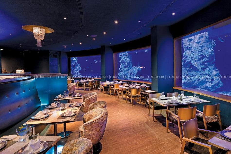 - Ресторан Aquamarine — предлагает блюда из рыбы и морепродуктов.
