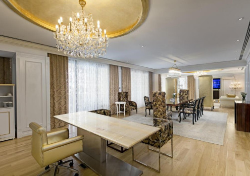 Для гостей – площади для торжественных мероприятий, Wi-Fi, парковка, аренда машин, услуги консьержа, услуги прачечной.