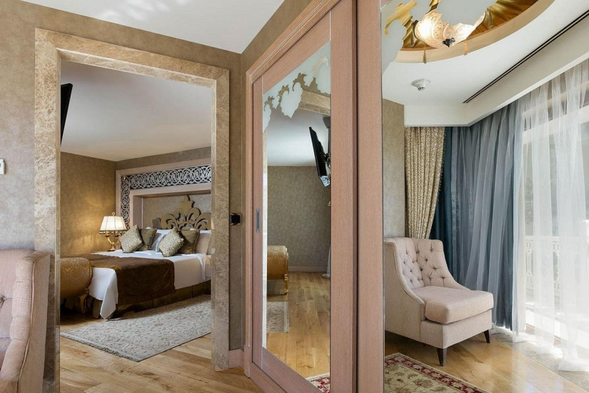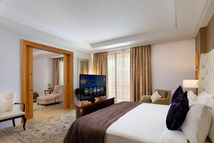 - В отеле номера различных категорий. Номера сочетают роскошные интерьеры в стиле восточного дворца и первоклассные современные удобства, а с балконов открывается прекрасный вид на море, живописные бассейны и сады отеля.