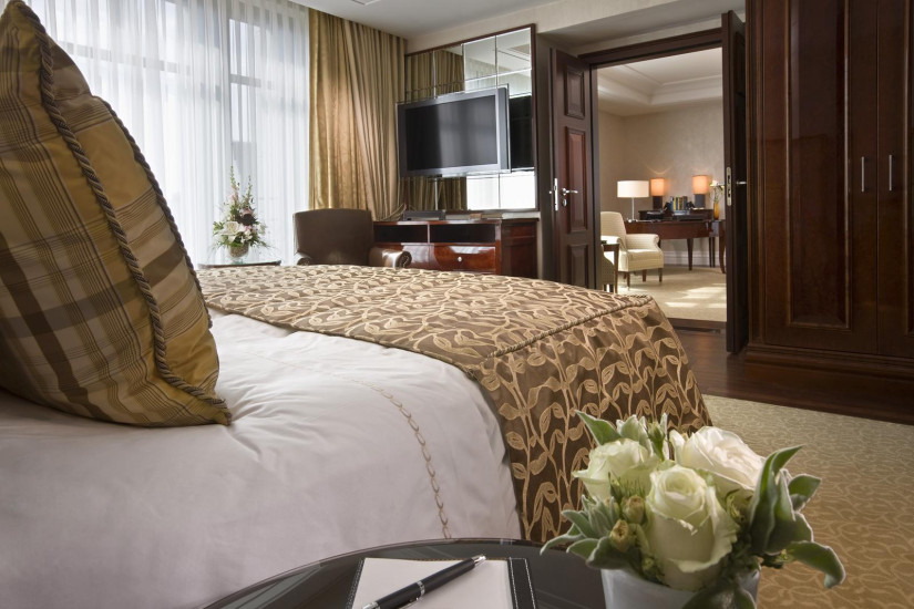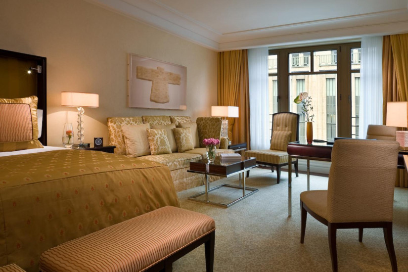 - 79 м2. Состоит из спальни, гостиной, гардеробной, ванной комнаты с ванной и душем, гостевой уборной. Вид во внутренний двор отеля или на Старый город.