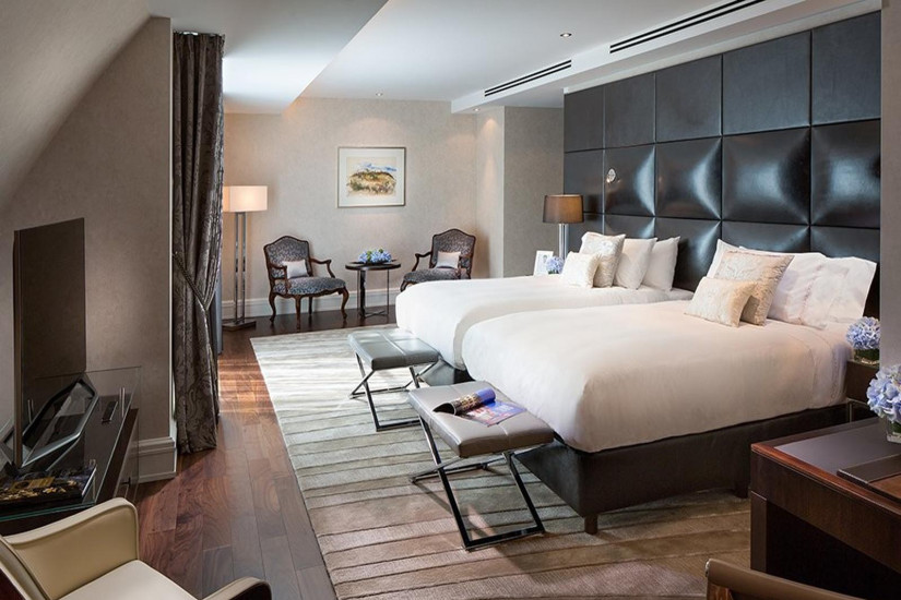 - 48-55 м2. Состоит из спальни с кроватью king-size или двумя кроватями queen-size, зоны отдыха и рабочей зоны, ванной комнаты с ванной и душем. Вид во внутренний двор отеля или на улицу. Возможно объединение номеров.