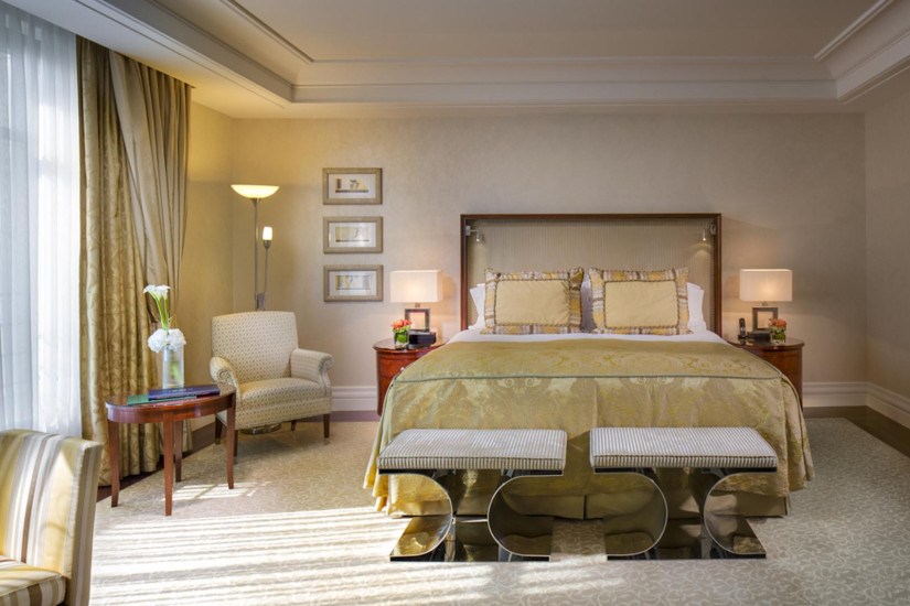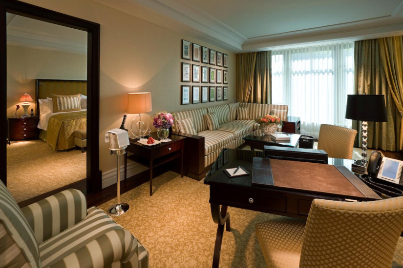 - 172-222 м2. Роскошный номер с видом на Старый город обставлен мебелью из темного дерева и отделан великолепным текстилем в кремовых тонах, состоит из двух спален с кроватями king-size, элегантной гостиной с обеденной зоной, двух ванных комнат (одна — с гидромассажной ванной и душевой кабиной, другая — с ванной и паровой кабиной), гостевой уборной.