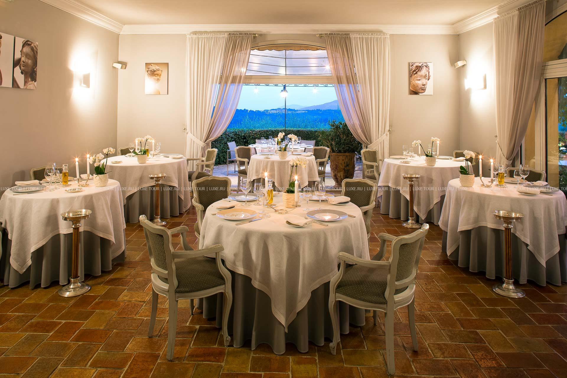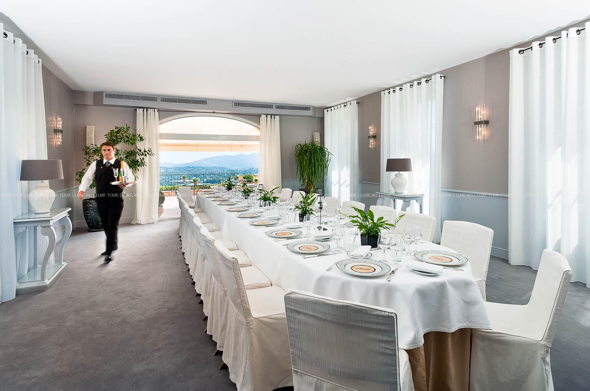 Гастрономический ресторан представляет изысканные блюда Прованса, приготовленные под руководством шеф-повара Jacques Chibois — обладателя многих почетных наград, включая две звезды Michelin. Концепцией кулинарного искусства Жака Шибуа является использование в приготовлении всех блюд первосортного оливкового масла. Блюда подаются в элегантном зале с камином или на открытой террасе, в тени оливковых деревьев. Прекрасным дополнением к деликатесам являются превосходные вина из собственного винного погреба отеля, насчитывающего более 800 марок французских вин.