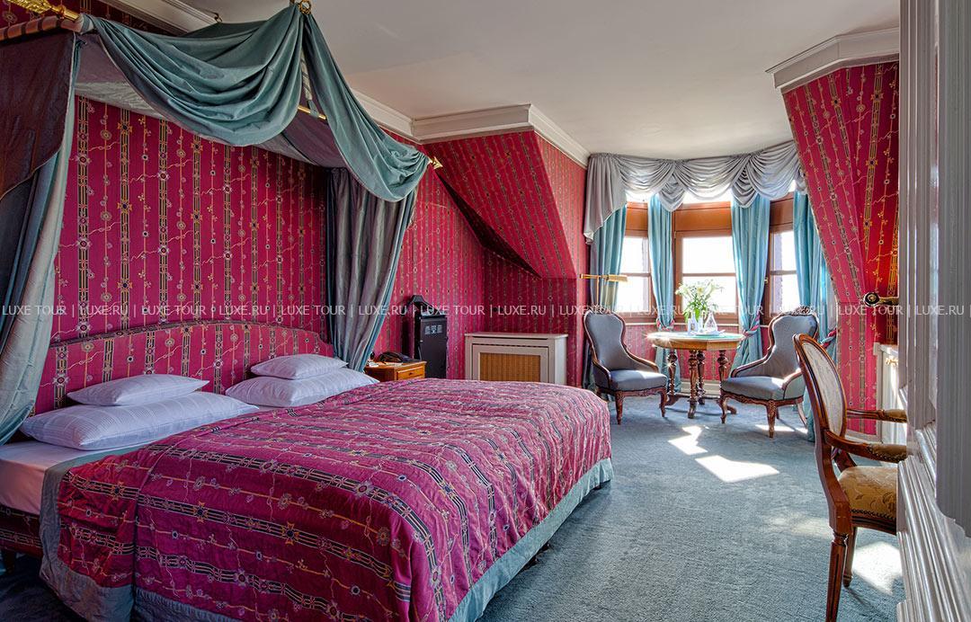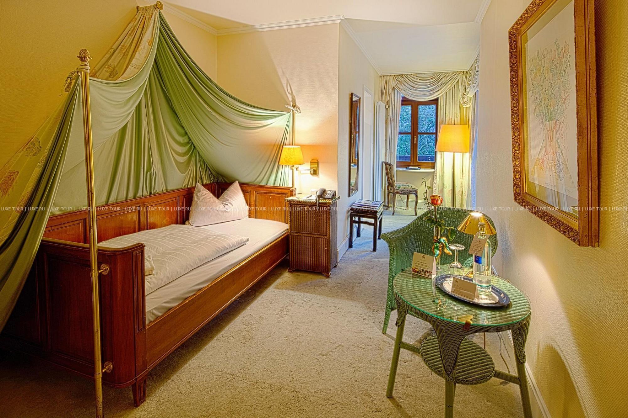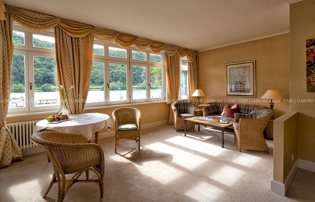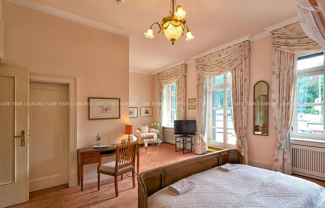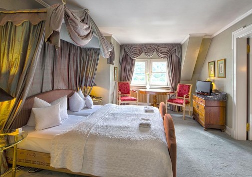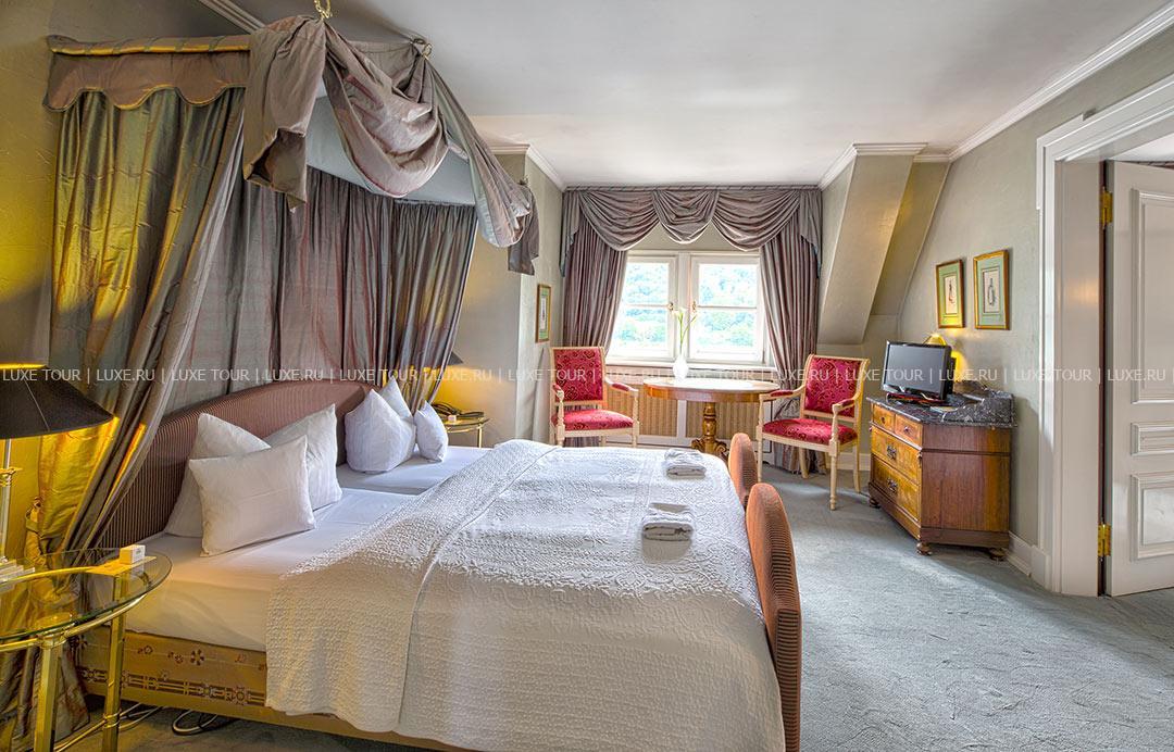 Krone Assmannshausen Германия — очаровательный отель с остроконечными башенками и белоснежным фасадом, украшенным ажурными деревянными балкончиками, расположился на живописном берегу Рейна, в окружении пышных виноградников региона Рейнгау. Krone Assmannshausen Германия разместился в здании XVI века — бывшей таверны «Корона», которая затем стала элегантным отелем, где останавливались представители богемы и знатной аристократии. Дух истории и изысканная атмосфера сохранилась в отеле по сегодняшний день: потолки, отделанные деревянными балками, стены, обшитые дубовыми панелями, антикварная мебель, драпировки из великолепных тканей, старинные живописные полотна. При этом номера оборудованы с современным комфортом, а из их окон и с балконов открывается изумительный вид на Рейн и живописные виноградники.