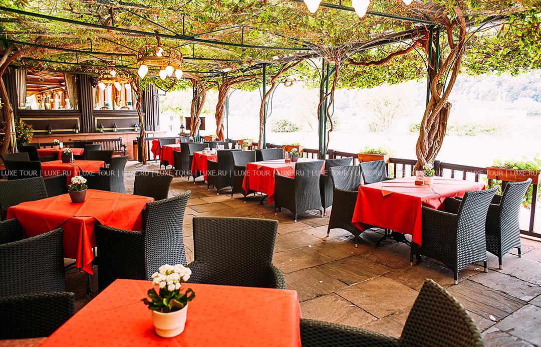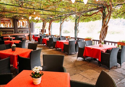 Также в теплое время работает утопающая в тени глициний открытая терраса с чарующим видом на Рейн.