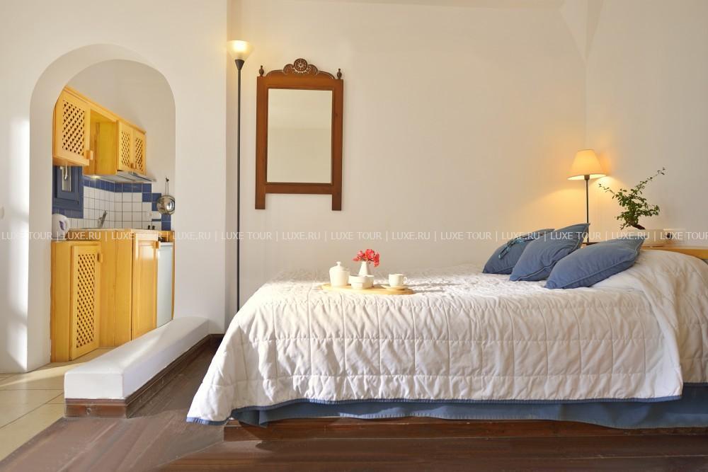 На живописном побережье острова Санторини у прозрачного Эгейского моря с безграничной линией горизонта, в солнечном свете, среди ярких цветов, окружающих сверкающий бассейн, расположен элегантный отель Tamarix del Mar Suites Santorini. Этот небольшой отель, построенный в 2003 году в традиционном архитектурном стиле острова Санторини и недавно полностью обновленный, удивительным образом сочетает бережное отношение к традициям острова, доброжелательность персонала и современный сервис 21 века; от белоснежного здания отеля с полукруглыми фасадами, синими ставнями, деревянными дверями, балконами, увитыми зеленью, веет теплотой и безмятежностью. В обеденном зале и баре отеля предложены блюда международной и местной кухни с широким выбором напитков. Также к услугам гостей – современный тренажерный зал, библиотека, Интернет-уголок.