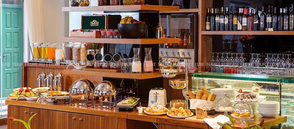 Элегантный лобби-бар предлагает различные напитки, изысканные вина и закуски.