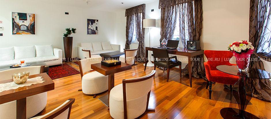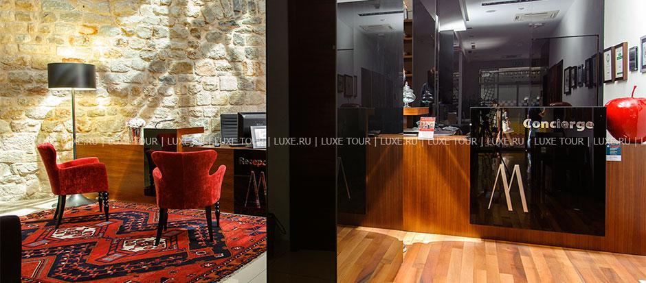 Marmont Hotel Сплит — новый изысканный отель, имеющий уникальное расположение в историческом центре Сплита, на небольшой средневековой площади, рядом с входом во дворец Диоклетиана – древний памятник, входящий в список всемирного наследия ЮНЕСКО. Отель назван в честь знаменитого французского маршала Огюста Фредерика де Мармона, который во время наполеоновской кампании управлял Дубровницкой республикой и первым в XIX веке начал строительство дорог в Далмации. Атмосфера и интерьеры отеля представляют собой гармоничную эклектику шикарного современного дизайна и искусных вкраплений деталей средневекового замка: стильные интерьеры комфортабельных номеров отделаны натуральным деревом, а из их окон открывается чудесный вид на уникальную архитектуру Сплита, в уютном ресторане и лобби-баре декор XXI века соседствует с каменной кладкой XV столетия, а в баре на просторной террасе можно насладиться видом на старинную площадь.