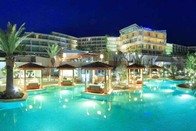 В отеле 324 номера различных категорий, включая 10 Standard Rooms, 236 Superior Rooms, 5 Deluxe Rooms, 14 Junior Suites, 49 Amfora Studio Suites, 2 Amfora Royal Suites (Premium Suites) и 8 Amfora Deluxe Two-Bedroom Suites. Интерьеры номеров выполнены в элегантном современном стиле, выдержаны в светлых тонах и отделаны изысканными натуральными тканями, с балконов открывается чудесный вид на морской залив и живописный парк.