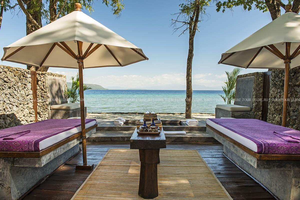 Среди девственных джунглей небольшого острова Мойо, где обитают олени и дикие кабаны, обезьяны и морские орлы, где шумят прохладные водопады, а кристально чистые воды моря Флорес изобилуют подводной фауной, в живописной бухте с белоснежным пляжем расположился Amanwana, включающий лишь 20 бунгало и выполненный в стиле палаточного городка. В просторных комфортабельных номерах – уютные интерьеры, с деревянными полами, удобной мебелью, украшениями работы индонезийских мастеров, террасами, окруженными пышной тропической зеленью и выходящими на лазурный залив Amanwana. В отеле открыт спа центр The Jungle Cove Spa, включающий три отсека с гидромассажной ванной и душем, где предлагаются различные виды массажа и спа процедур.