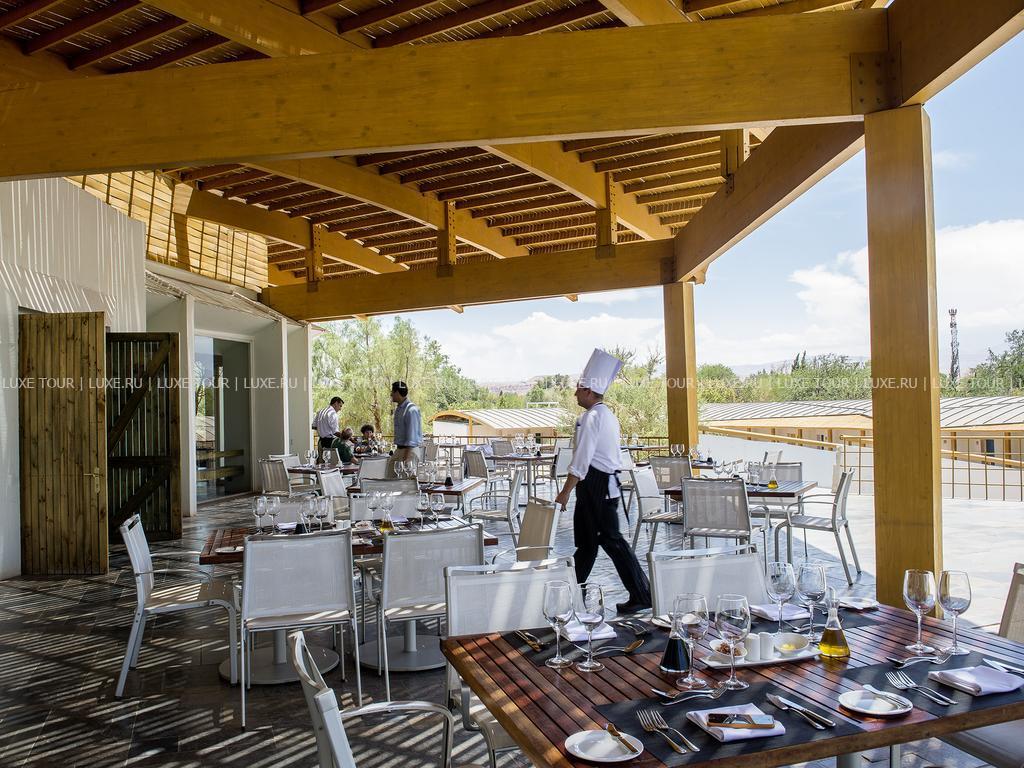 В ресторане отеля гости могут наблюдать за приготовлением традиционных блюд местной кухни. Гости могут обедать и на открытых террасах с видом на вулкан Licancabur.
