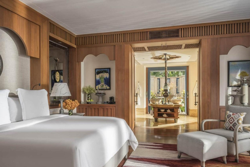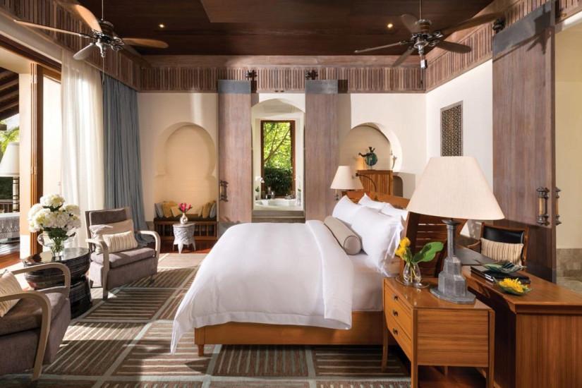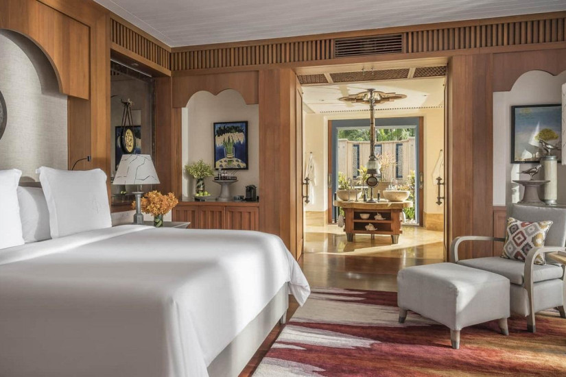 - 68 м2. Состоит из спальни с кроватью king-size или двумя кроватями twin, гардеробной, ванной комнаты открытого плана с ванной в стиле хаммама и душем, душа на открытом воздухе, в некоторых номерах терраса с зоной отдыха, обеденной зоной и видом на сад. Номера расположены на 1 этаже. Максимальное размещение – 3 взрослых или 2 взрослых + 1 ребенок.