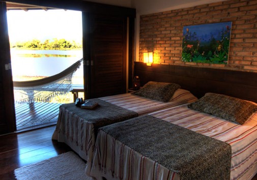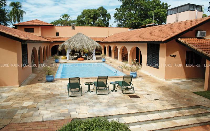 Гостиница Pousada do Rio Mutum, Пантанал, занимает 7 гектаров парковых земель с тропическими лесами, небольшими речками и быстрыми ручьями, расположена у реки Mutum, на севере Национального заповедника Pantanal (Бразилия), — самой большой территории заболоченных земель в мире площадью около 200 тысяч км2, объявленной ЮНЕСКО Мировым Наследием и Запасом Биосферы.