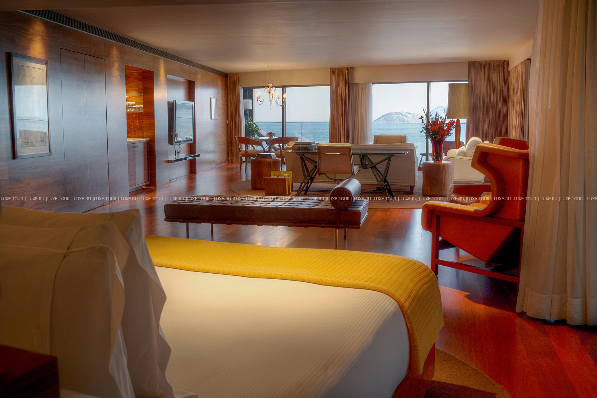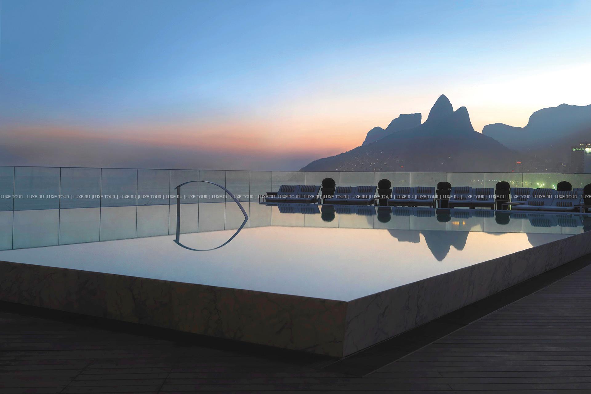Эксклюзивный Hotel Fasano Rio de Janeiro, Рио-де-Жанейро, расположен в центре знаменитого бразильского пляжа Ipanema и с завидной ловкостью сочетает утонченность этого города, современность и эффективность дизайна и прекрасный сервис. С помощью известного дизайнера Филиппа Старка и владельца Роджерио Фазано,этот отель воплотил в себе шик и великолепие прежней эры босса нова, когда пляж Ipanema процветал в роскошном соседстве с Рио. Высокое здание серой гаммы с балконами и бассейном на крыше, откуда можно с легкостью обозревать весь город, береговую линию, океан и окрестные горы, было названо Филиппом Старком «самым лучшим отелем в мире», и это не голословная фраза. При создании Hotel Fasano Rio de Janeiro, Рио-де-Жанейро, использовались материалы, доставляемые со всего мира — мрамор из Греции, желтый оникс из Китая, кирпич XIX века из Аргентины. Лобби — визитная карточка отеля — изумляет своей оригинальностью и практичностью: отделка из эбенового дерева очень украшает интерьер, а белоснежные ковры четко разделяют пространство на три зоны. Винтажный дизайн интерьеров собран из модных деталей 1950-1960-х годов — бархатные ковры, зеркала сюрреалистических форм в виде знаменитого уха Сальвадора Дали, мягкая элегантная мебель классического стиля, матовый блеск гладких деревянных полов, скульптуры из стекла Murano — все это безукоризненно соединено в единое целое. В ресторане и барах отеля предлагаются изысканные блюда средиземноморской кухни, дополненные винами, фирменными коктейлями и оригинальными напитками. Также для гостей — салон красоты Lancõme, фитнес-центр, залы для банкетов и заседаний, бизнес-центр, превосходный сервис.