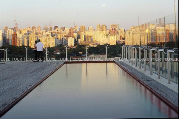 Эксклюзивный Hotel Unique, Сан-Пауло, окружен изящным ландшафтным садом с пальмами и извивающимися лианами, расположен в центре престижного района Jardins, по соседству с самым большим городским парком Ibirapuera Park, рядом с финансовым и деловым центрами Сан-Пауло. Этот «уникальный» отель полностью оправдывает свое название — он действительно уникален во всех смыслах. Владелец Jonas Siaulys задумывал построить на его месте торговый центр, но вскоре оказалось, что город нуждается именно в отеле, который сможет отразить весь космополитизм Сан-Пауло. В основу концепции отеля были взяты идеи владельца знаменитого нью-йоркского клуба «Studio 54» Ian Schrager, и в 1999 году началось строительство Hotel Unique, Сан-Пауло. Серо-синее здание отеля с отдельными входами, круглыми окнами диаметром 180 см, бассейном и террасой на крыше, выполнено архитектором Ruy Ohtake в виде огромное арки длиной 100 метров и абсолютно индивидуально, точно, пропорционально и прекрасно вписано в городской ландшафт. Дизайн внутренних пространств исключителен и выполнен с большим вкусом — изогнутые коридоры, обилие естественного освещения, изящная мебель оригинальной и классической форм, отделка из оникса на стенах, современный декор с элементами барокко, стильная подсветка, талантливо подобранная гамма бирюзовых и янтарных тонов — все это придают отелю шарм, глубину и элегантность. В ресторане и барах отеля предлагается замечательное меню международной кухни от шеф-повара, дополненное винами, коктейлями и прохладительными напитками. Также для гостей — фитнес-центр, конференц-центр, Интернет-кафе, библиотека, бассейн, превосходный сервис.