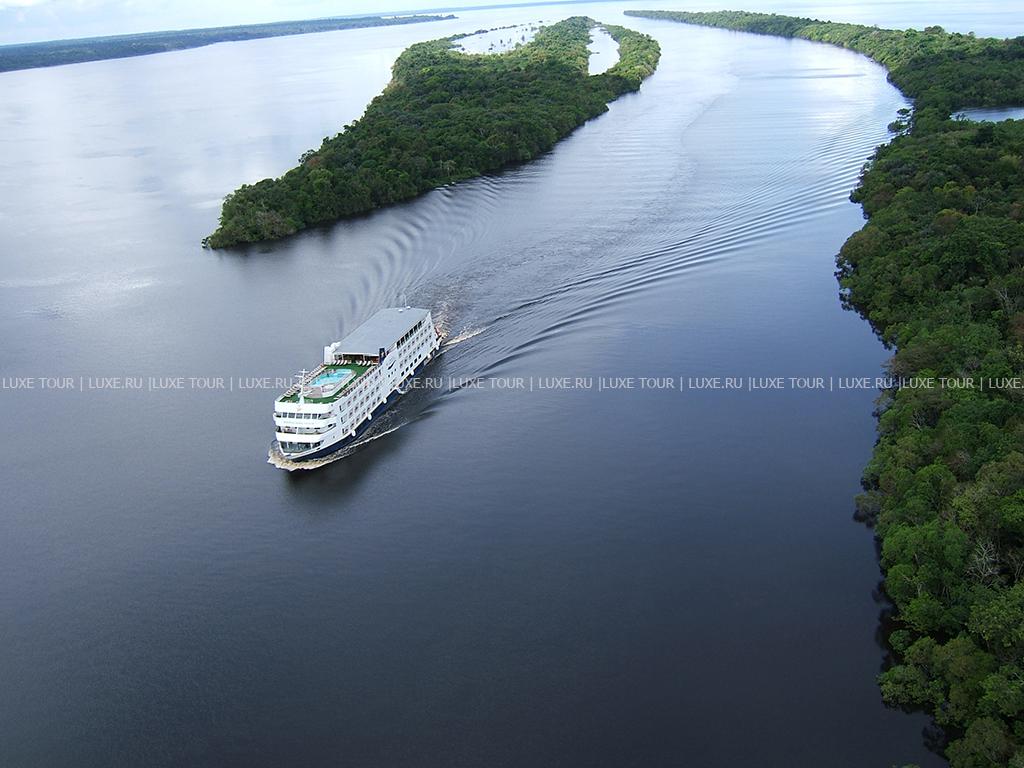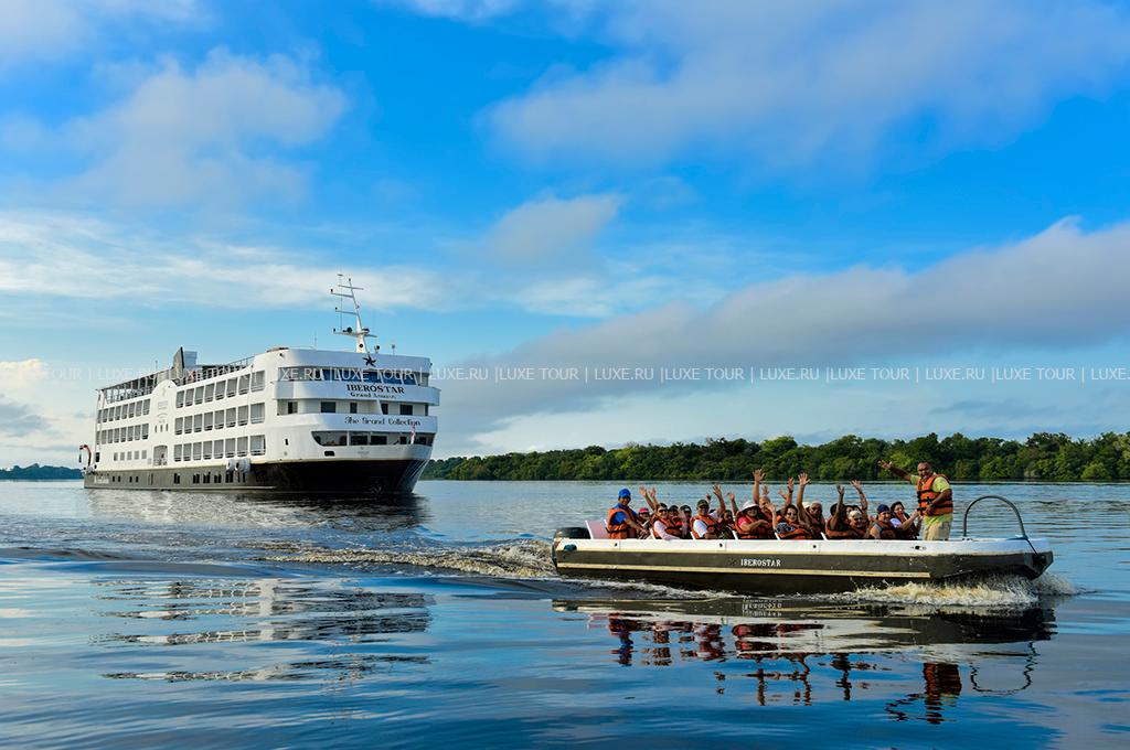 Белоснежный пятипалубный лайнер Iberostar Grand Amazon совершает круиз по двум полноводным рекам — Амазонке и Рио-Негру, окруженным дождевыми лесами, и предлагает гостям экстраординарное путешествие, где превосходное проживание сочетается с удивительным опытом открытия природы Амазонии — региона изумляющего своими тропическими растениями и редкими видами экзотических животных. Во время путешествия по руслам рек гости наслаждаются удобством и гостеприимством, которые предоставляет Iberostar Grand Amazon. Корабль весом 1500 тонн со сверкающими бассейнами на верхней палубе, движется по глубоким рекам со скоростью 12 узлов в час. В ресторанах и барах предлагается превосходное меню местной и международной кухни, дополненное винами и коктейлями. Также для гостей — фитнес-центр, зал для банкетов и заседаний, магазины.