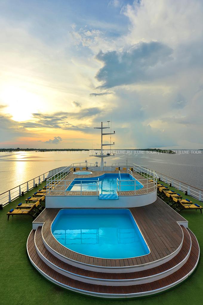 Корабль располагает двумя открытыми бассейнами и джакузи на верхней палубе. Во время круиза гостям предлагаются уроки танцев, рыбная ловля, экологические классы, где участники могут узнать об уникальной флоре и фауне Амазонии. В местах остановок корабля организованы экскурсии, где гостям предлагается увидеть местную растительность, редкие виды животных, посетить местные деревни. Также во время путешествия проводятся экскурсии на моторных лодках по озерам Igapos и Igarapes. На корабле устраиваются тематические вечеринки с музыкальным сопровождением местной группы.