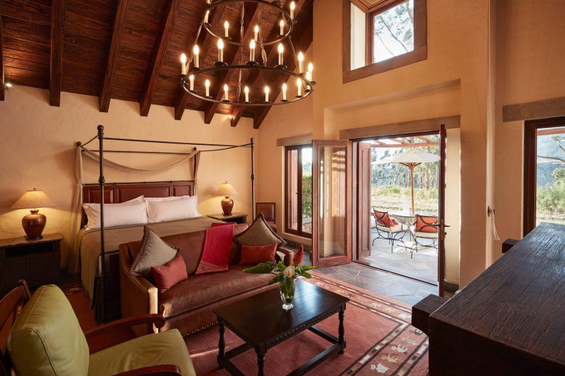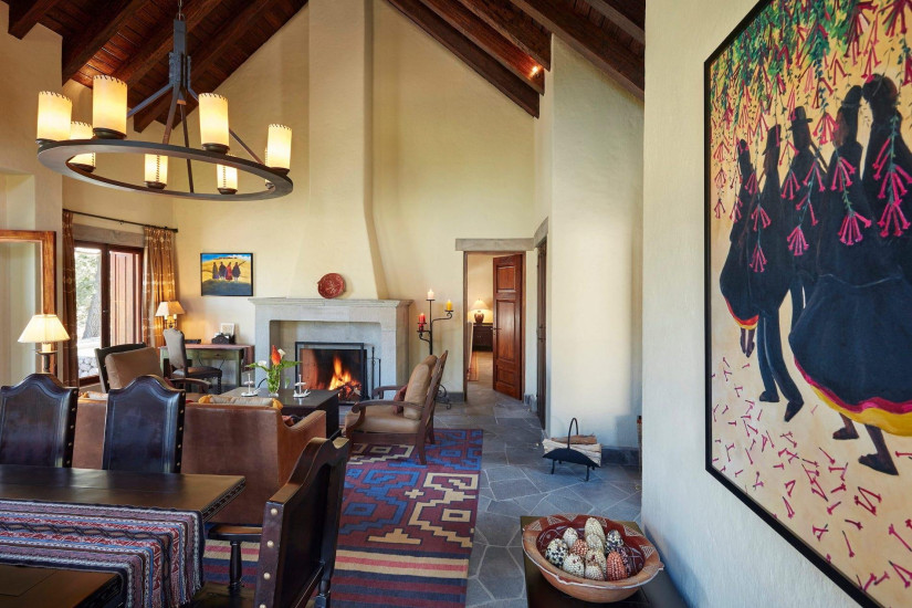 В просторных бунгало, выполненных в золотисто-песочных тонах, традиционный перуанский стиль с элементами современного дизайна: плиточные полы с подогревом, высокие потолки с деревянными балками, элегантная мебель с кожаной обивкой, ковры с ярким перуанским геометрическим орнаментом, просторные ванные комнаты, большие окна, террасы, выходящие к частным бассейнам, с прекрасными видами на сады отеля.