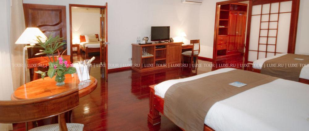Отель расположен на острове с прекрасными песчаными пляжами.