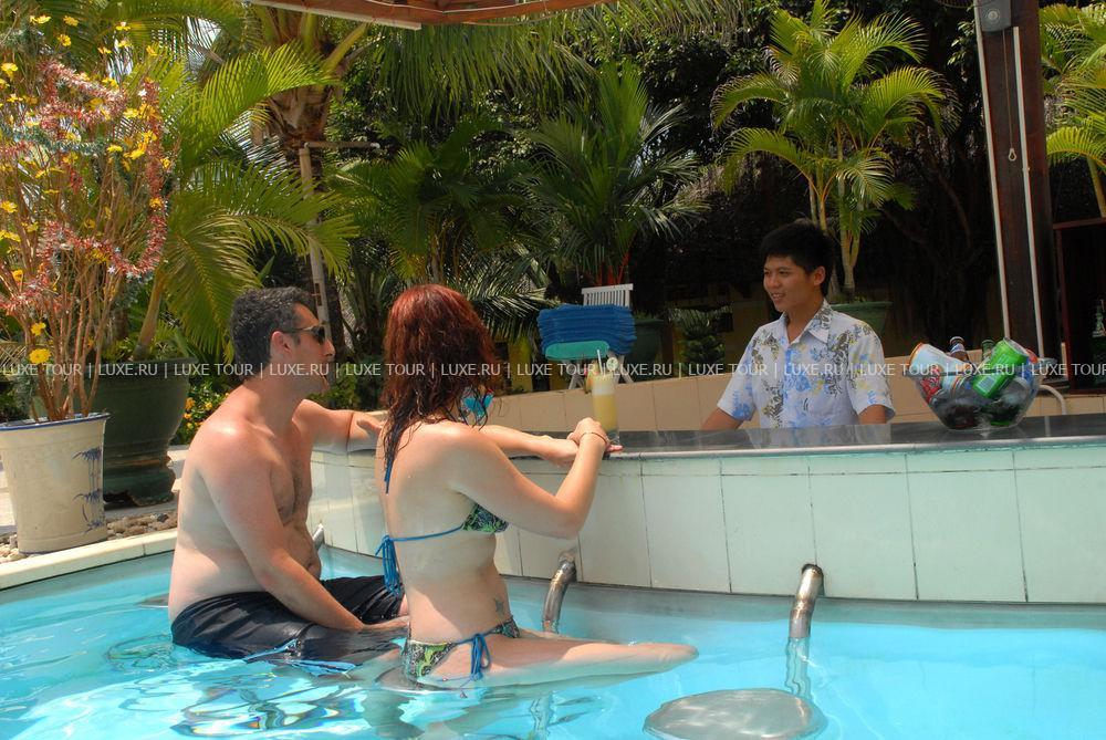 В баре у бассейна подаются экзотические напитки и легкие закуски.