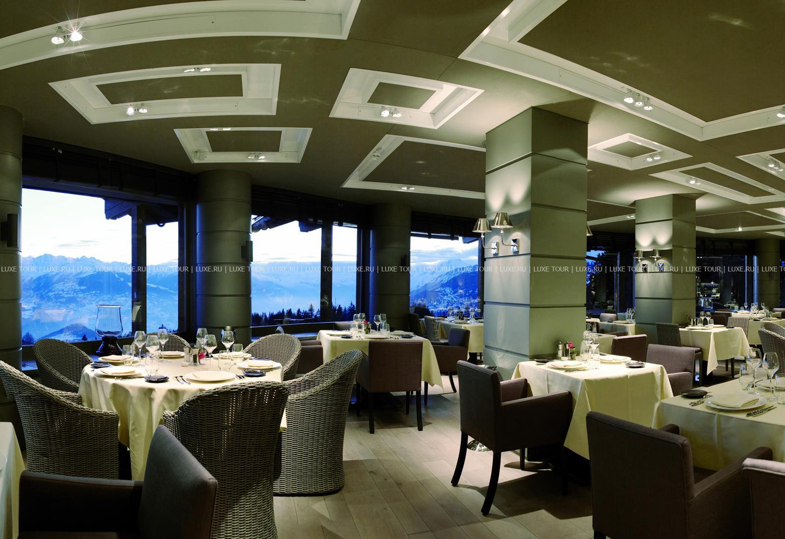 Ресторан отеля порадует гурманов отменной кухней и захватывающими видами на изумительные ландшафты Кранс-Монтаны. Ещё одна гордость отеля — винный погреб, где хранится богатая коллекция местных и импортных вин. Также к услугам гостей — ночной клуб, сигарный салон и бар-винотека.