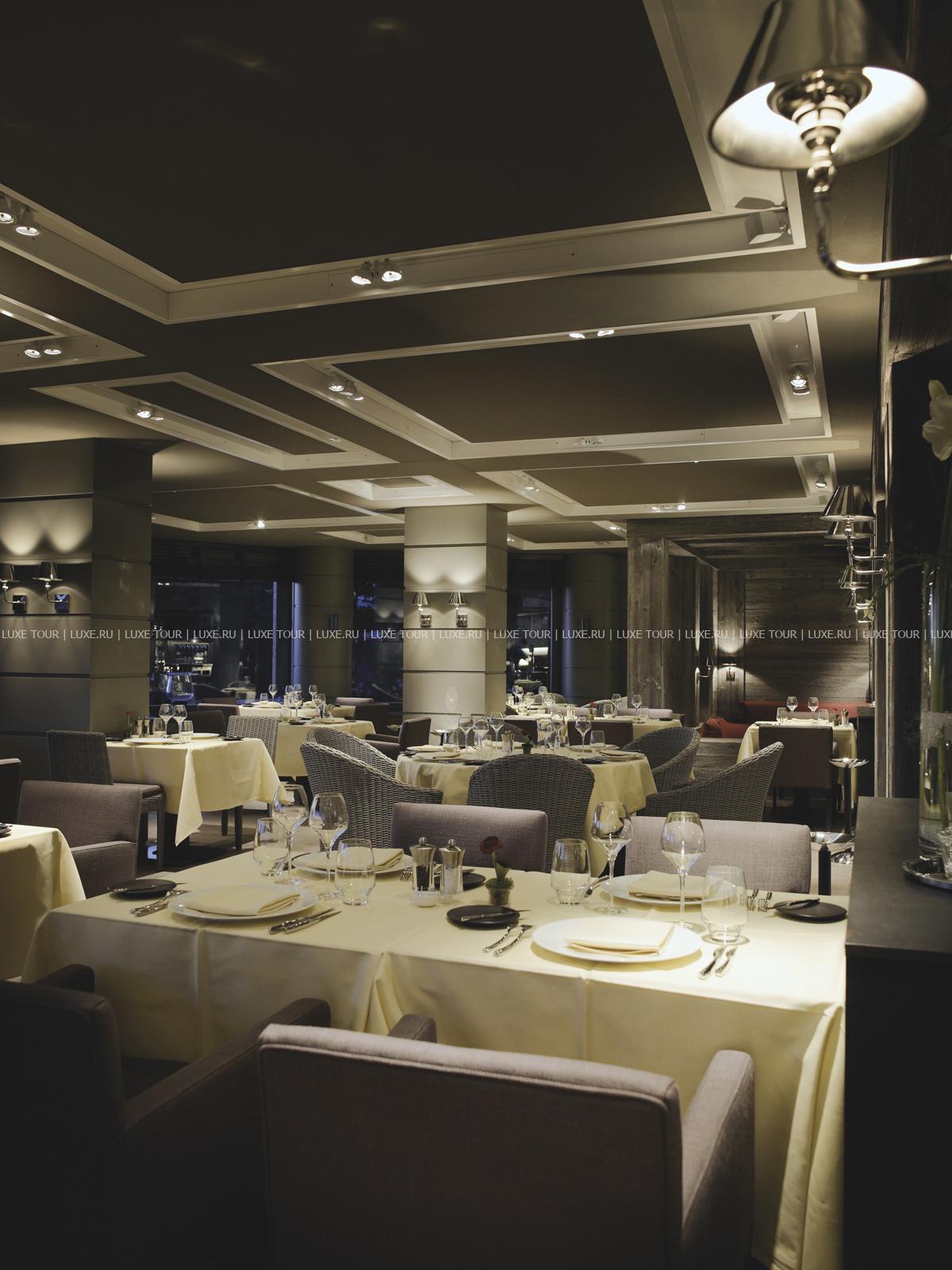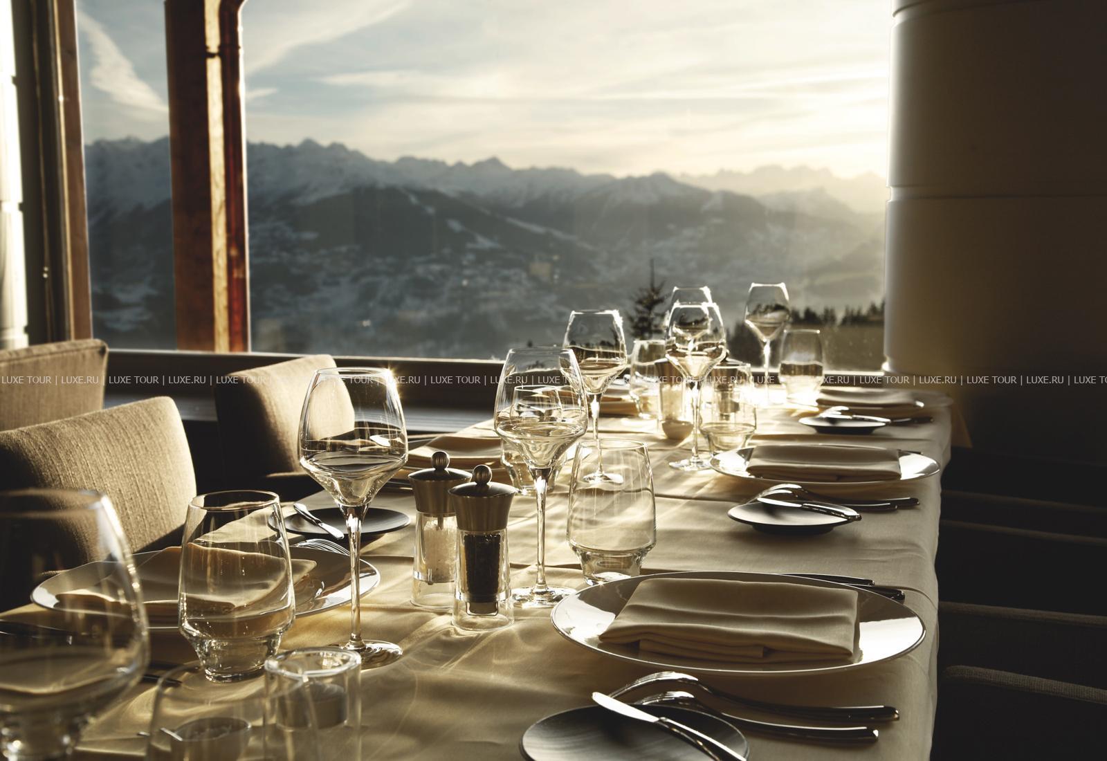 - В элегантном ресторане-ротонде Le Mont Blanc можно отведать деликатесы швейцарской и международной кухни, любуясь чарующими пейзажами Альп. Прекрасным дополнением к изысканным блюдам послужат лучшие местные и импортные вина из собственной коллекции отеля. На открытой подогреваемой террасе ресторана подаются деликатесные закуски, блюда-гриль и традиционный швейцарский раклетт.