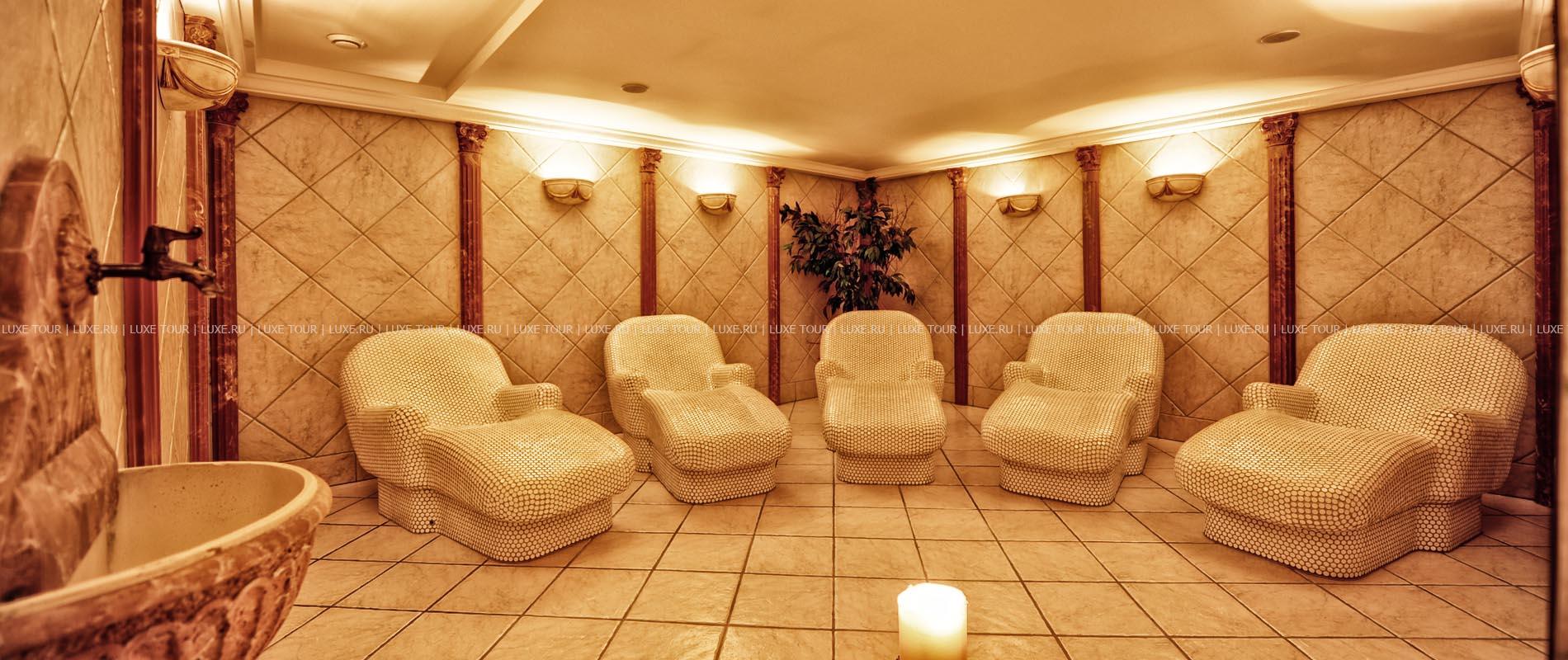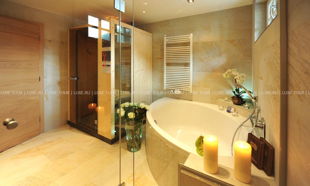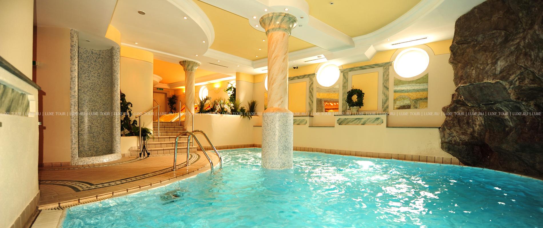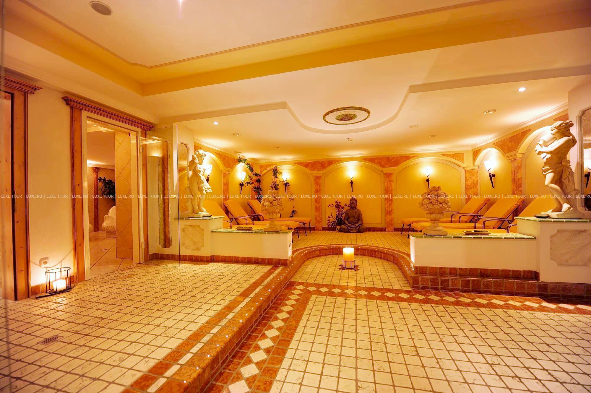 В отеле открыт прекрасно оборудованный СПА центр, включающий: крытый бассейн Spring Garden с кристально-чистой водой из горных источников, водопадом и гидромассажной зоной, тирольскую сауну, соляную парную (45ºC) с ароматами эвкалипта и ментола, римскую парную — лакониум (65°), тепидариум (39°) с подогреваемыми креслами, ароматическую парную калдариум (42 - 45ºC), гидротерапевтические ванны для ног Kneipp, ледяной фонтан, джакузи, самые разные целебные ванны, включая ванны с эфирными маслами и травами с тирольских лугов, солярий, фитнес-зал, салон красоты, а также процедурные кабинеты, где предложен огромный выбор различных видов массажа и услуг по уходу за лицом и телом.