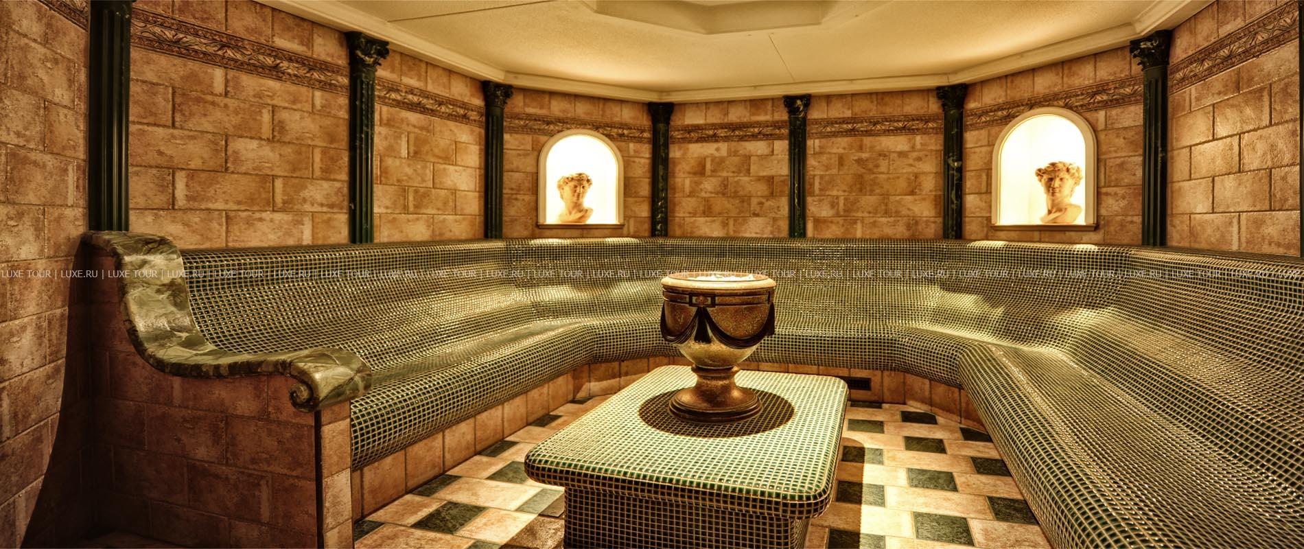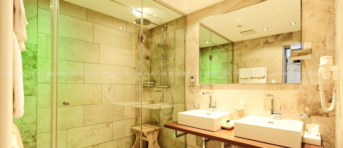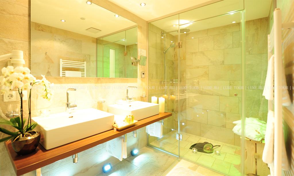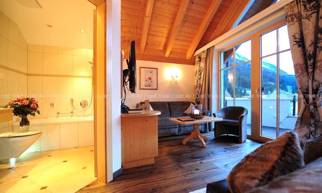 В отеле открыт прекрасно оборудованный СПА центр, включающий: крытый бассейн Spring Garden с кристально-чистой водой из горных источников, водопадом и гидромассажной зоной, тирольскую сауну, соляную парную (45ºC) с ароматами эвкалипта и ментола, римскую парную — лакониум (65°), тепидариум (39°) с подогреваемыми креслами, ароматическую парную калдариум (42 - 45ºC), гидротерапевтические ванны для ног Kneipp, ледяной фонтан, джакузи, самые разные целебные ванны, включая ванны с эфирными маслами и травами с тирольских лугов, солярий, фитнес-зал, салон красоты, а также процедурные кабинеты, где предложен огромный выбор различных видов массажа и услуг по уходу за лицом и телом.