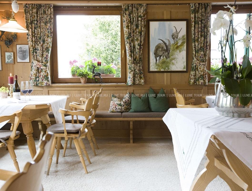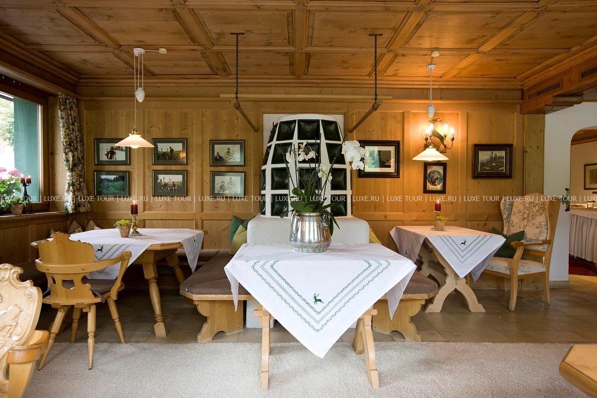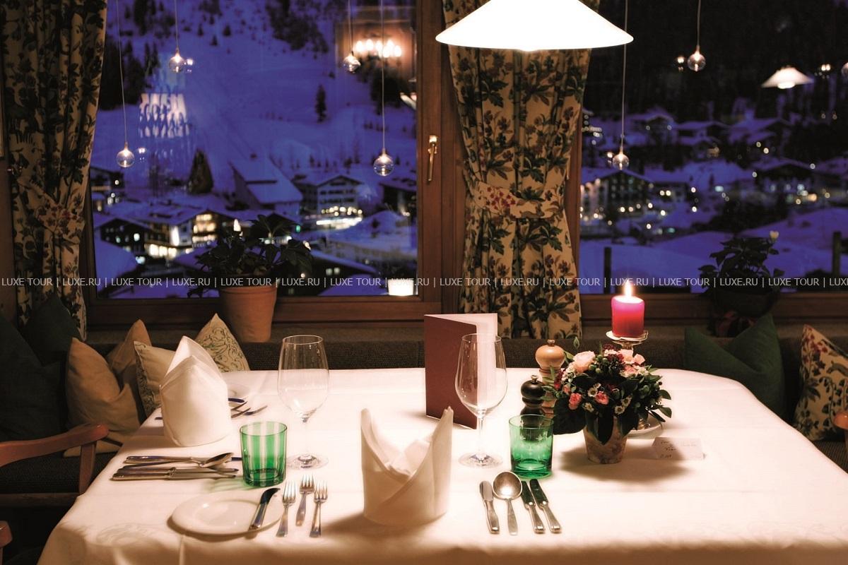 В ресторане Hubertusstube подаются легкие блюда, Schmankerl — традиционные австрийские лакомства, а также кофе и чай с домашней выпечкой и десертами. Вечером из окон ресторана открывается замечательный вид на живописные ландшафты Леха.