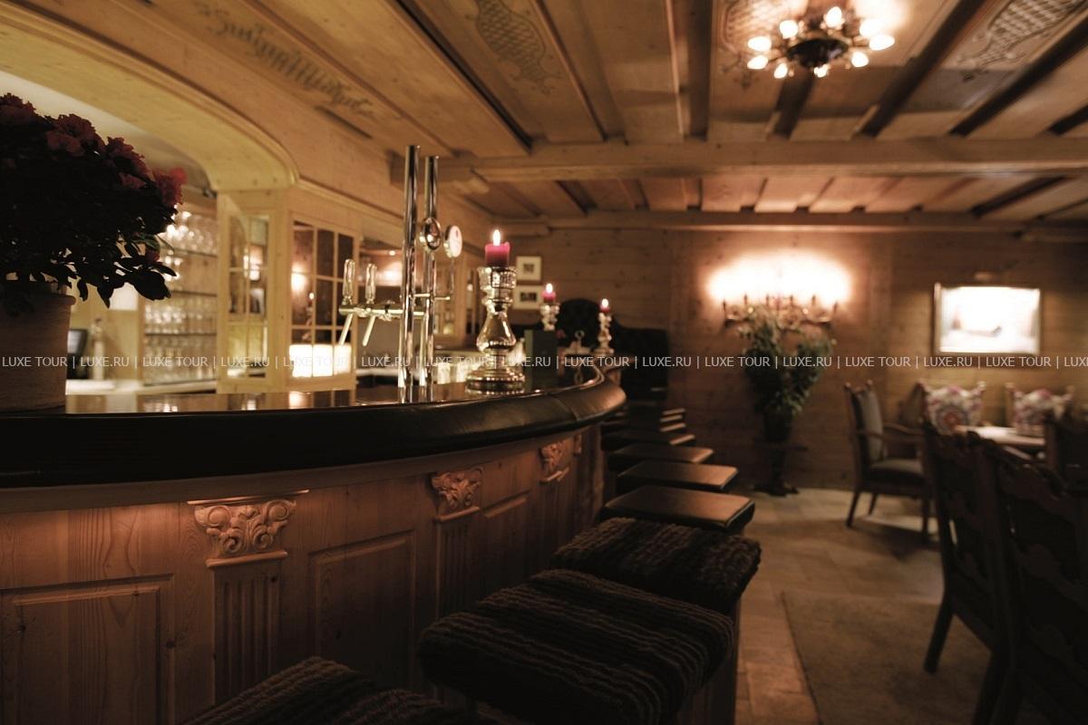 Уютный бар с обшивкой из дерева и камином располагает к приятному отдыху в непринужденной и дружеской атмосфере.