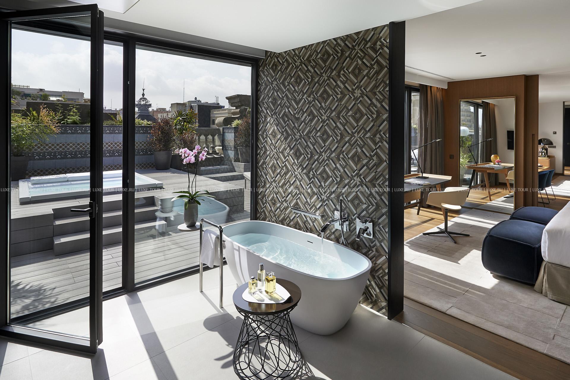Стильный Mandarin Oriental, Barcelona, расположен в самом престижном районе Барселоны — на бульваре Passeig de Gràcia, в финансовом и деловом центре города, неподалеку от фешенебельных бутиков, изысканных ресторанов и зданий, созданных архитектурным гением Антонио Гауди — церкви Sagrada Familia, знаменитых Gaudi Houses и Casa Batlló. Здание Mandarin Oriental, Barcelona, с панорамной террасой и бассейном на крыше, построено в современном элегантном стиле середины ХХ века с элементами модернизма, а внутренний сад отеля располагает к неспешному созерцанию. В ресторанах и барах отеля предлагается меню каталонской и средиземноморской кухонь, дополненное отличными винами, шампанским, коктейлями и прохладительными напитками. Также в распоряжении гостей — СПА-центр, фитнес-центр, залы для банкетов и заседаний, бизнес-центр, 2 бутика, бассейн.