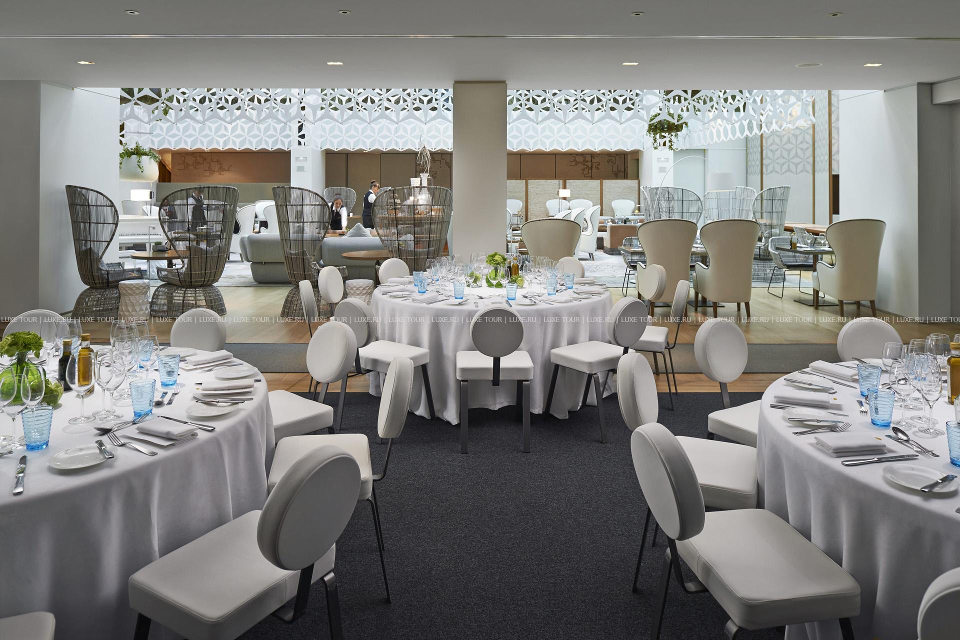 • В ресторане Moments с ярким и современным стилем и открытой террасой, выходящей в сад, сервируют изысканные блюда традиционной каталонской кухни от шеф-повара Carme Ruscalleda.