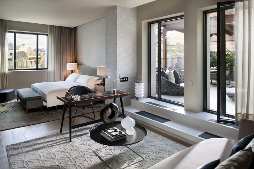 - 83 м2. Состоит из спальни с кроватью king-size, гардеробной, гостиной с обеденной зоной, ванной комнаты с ванной и отдельным душем, просторной террасы с джакузи и видом на бульвар Пасео де Грасия. Максимальное размещение — 3 человека. Гостям предоставляются услуги дворецкого.